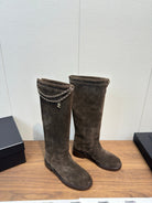 Chanel 25 Long Boot Brown Suede 465617