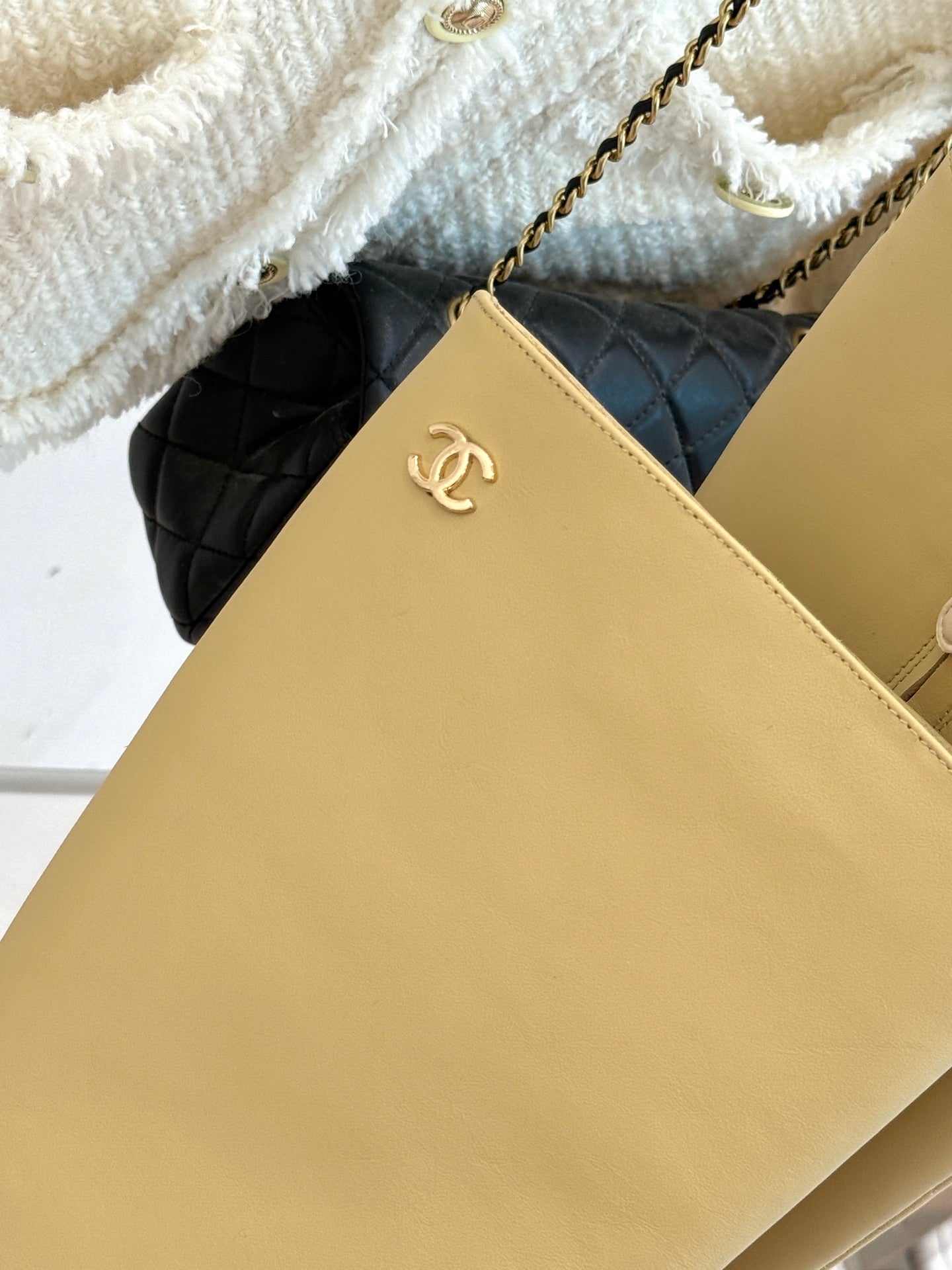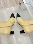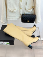 Chanel Double C Colorblock Heel Long Boot Beige Sheepskin 465418