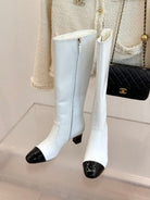 Chanel Double C Colorblock Heel Long Boot Black Sheepskin 465417