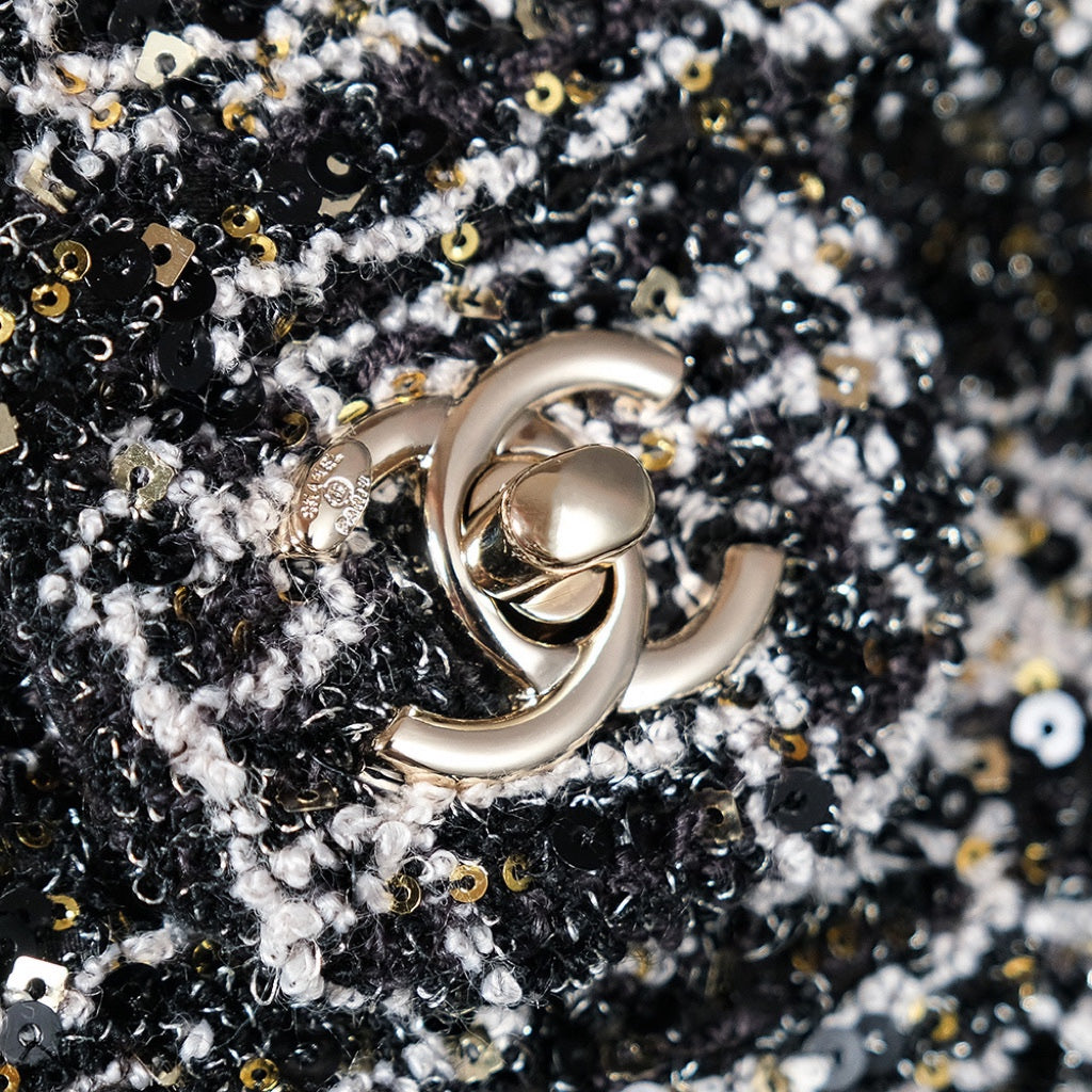 24S Flap Bag 20cm Black White Sequin Calfskin