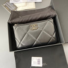 cc 19 zipped wallet 20cm black calfskin gold hardware