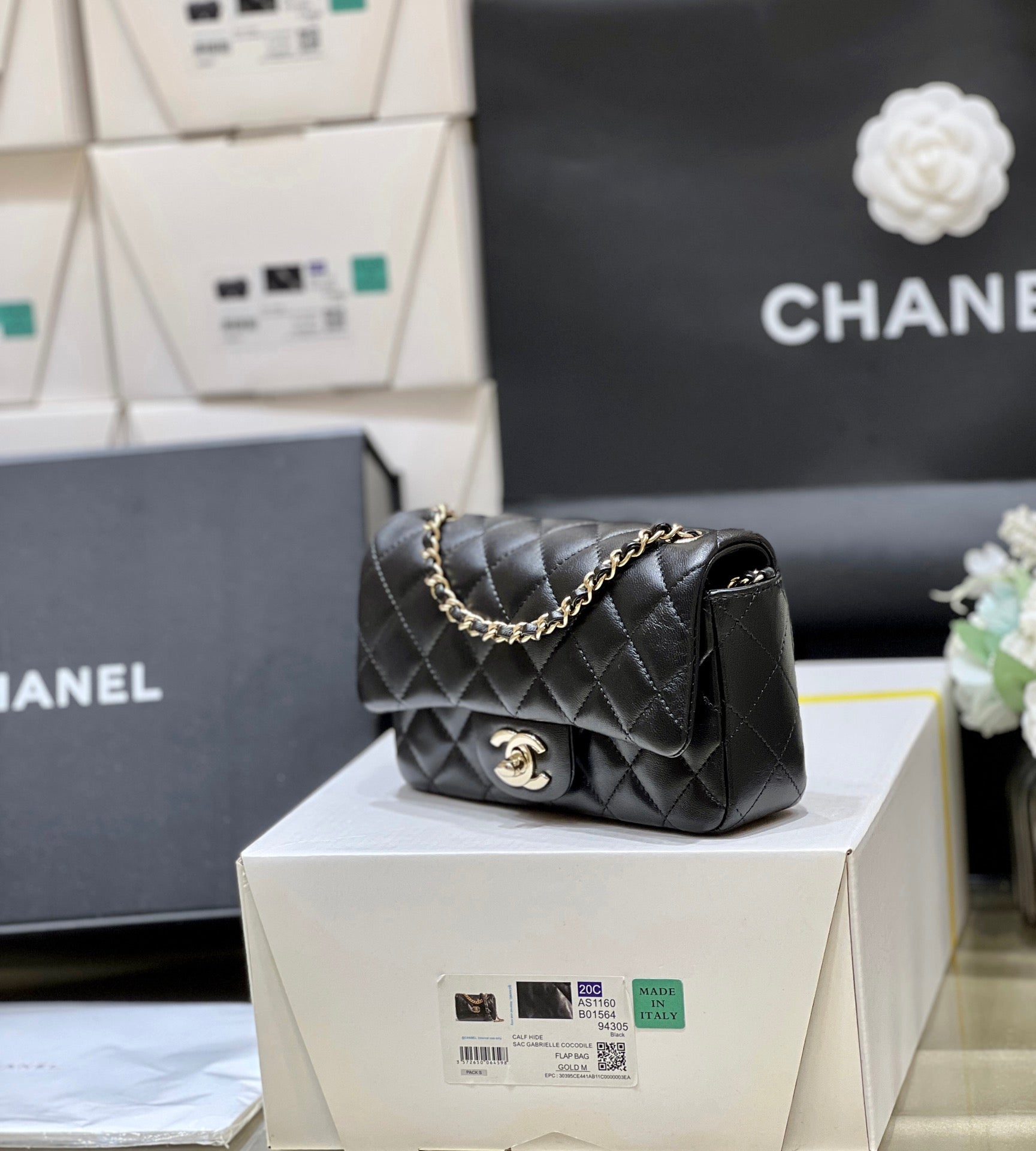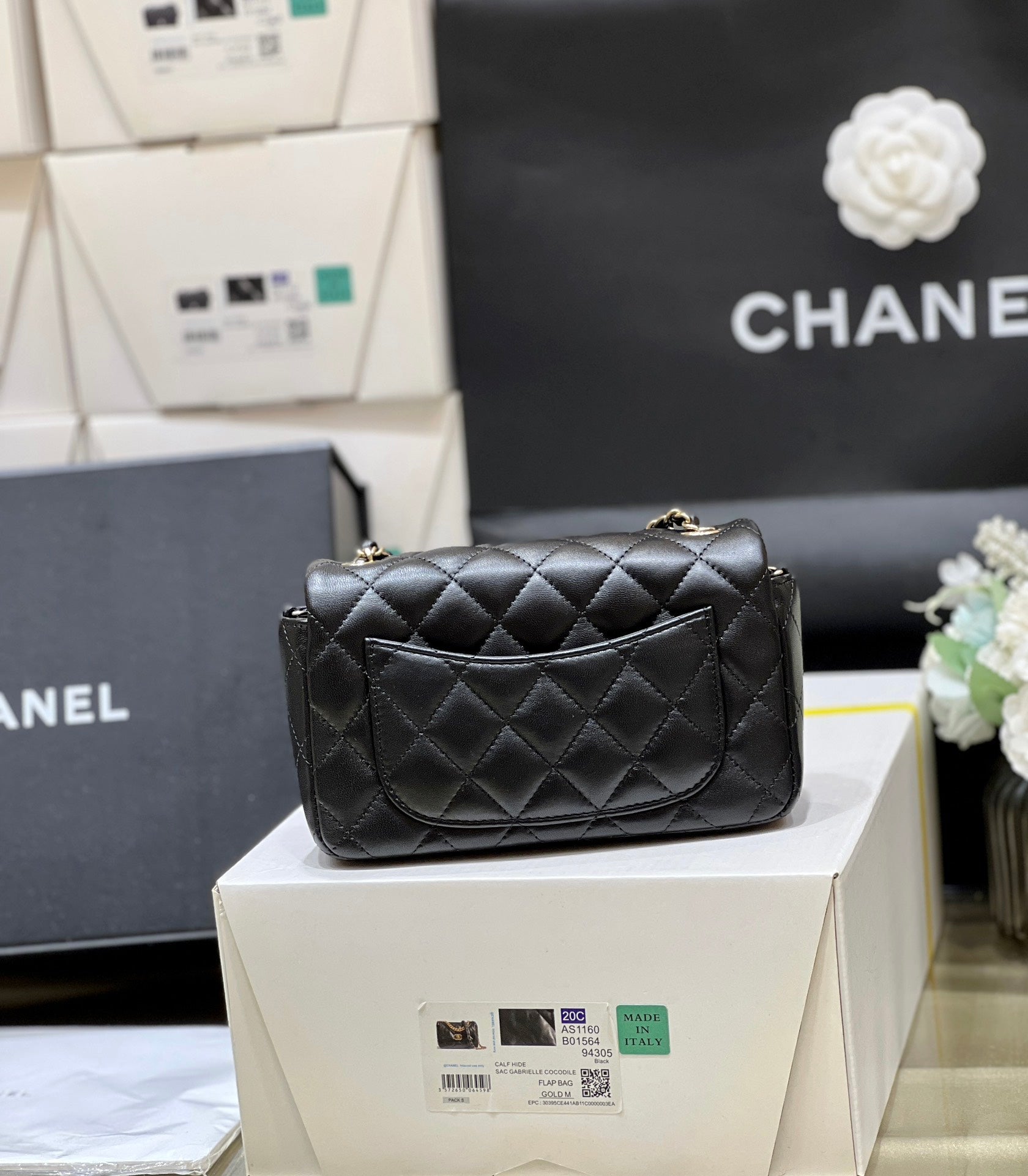 CC 24K Mini Flap Bag 18cm Black Lambskin Light Gold Hardware