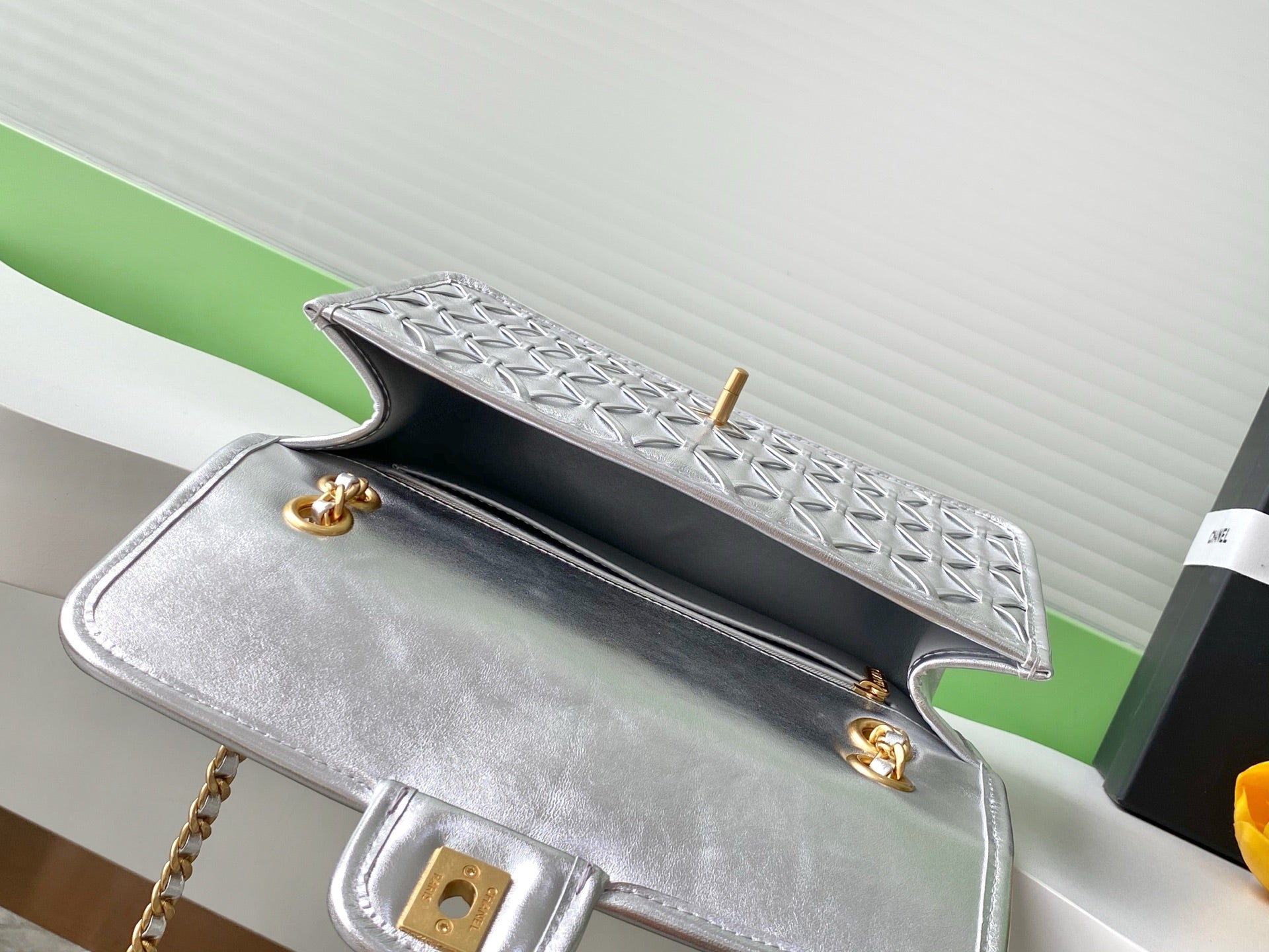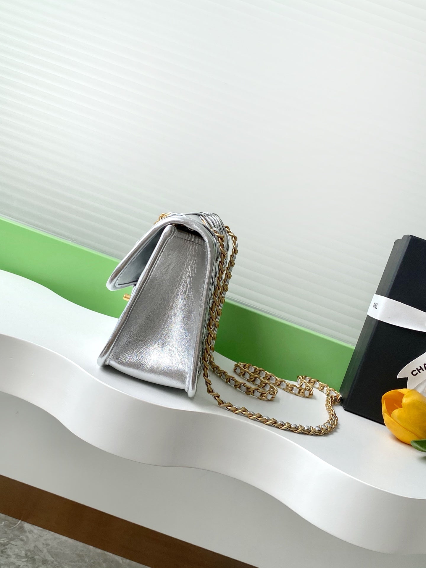 CC 25C Flap Bag 25cm Silver Metalic Quilted Lambskin