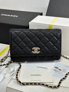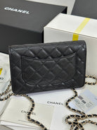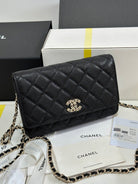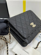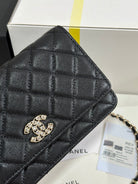 CC 25P Wallet On Chain 19cm Black Cowhide Heart Rhinestone 243601