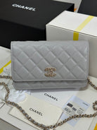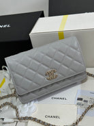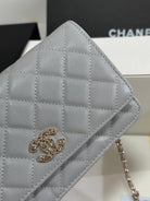 CC 25P Wallet On Chain 19cm Light Gray Cowhide Heart Rhinestone 243598