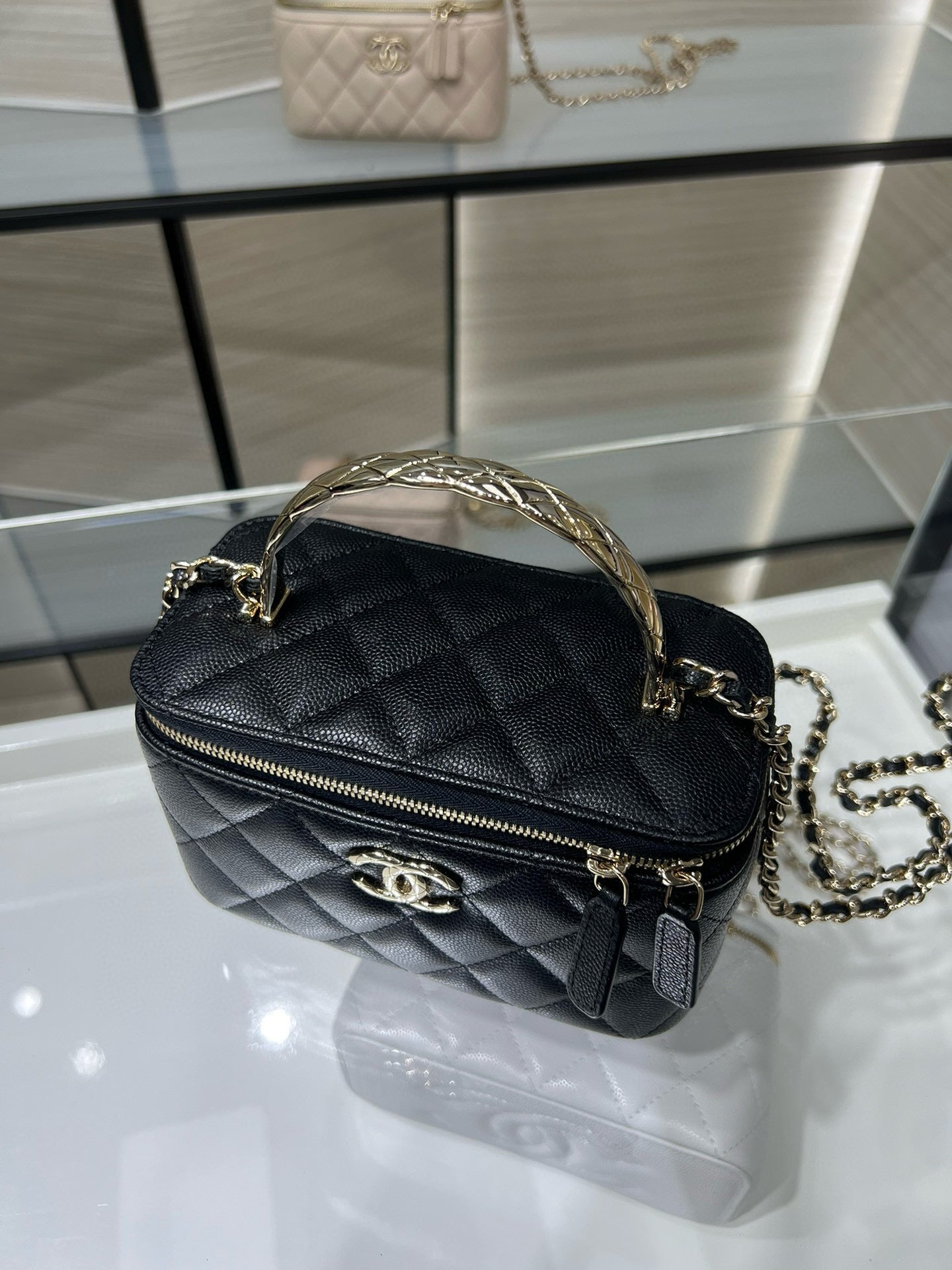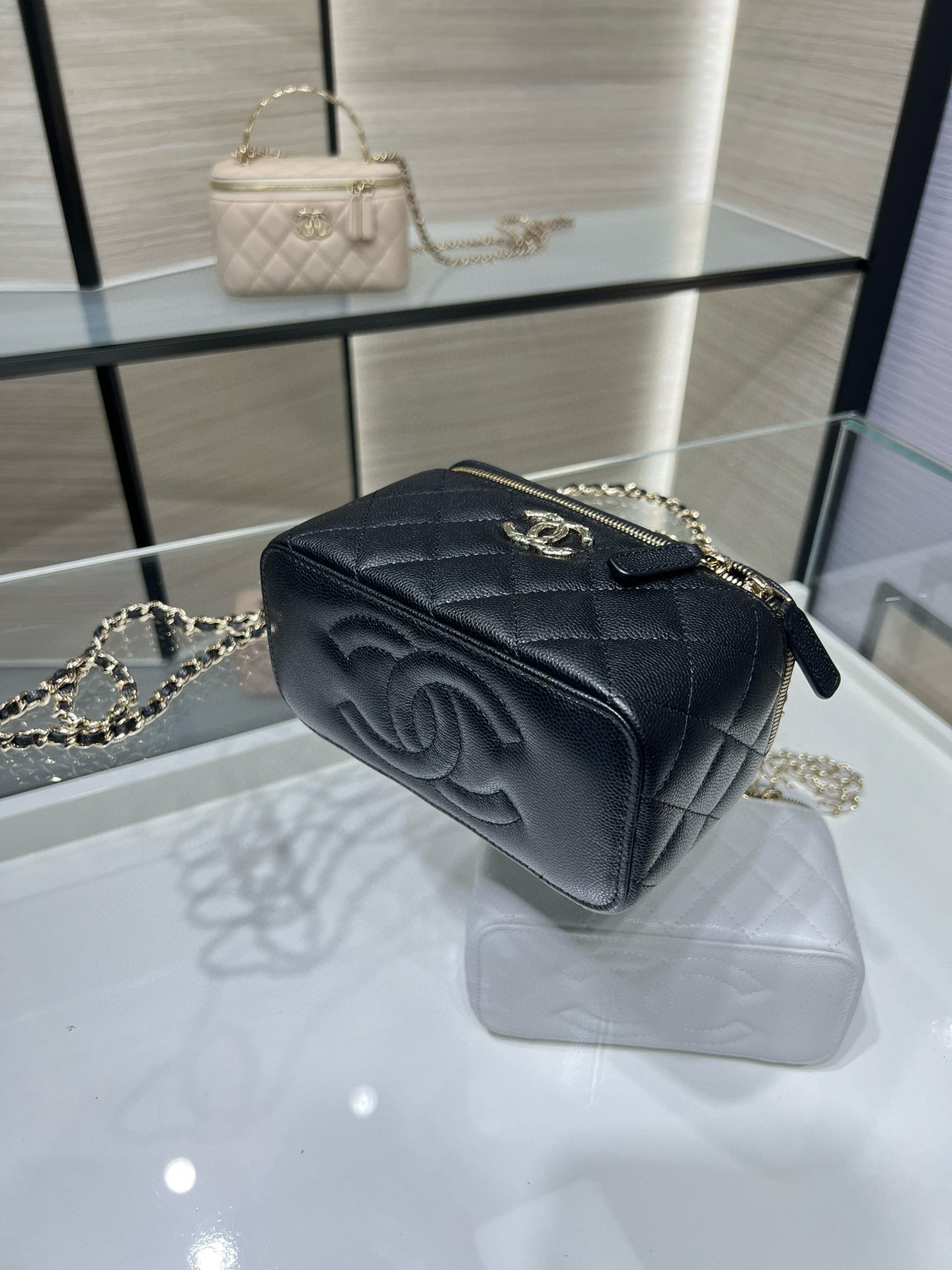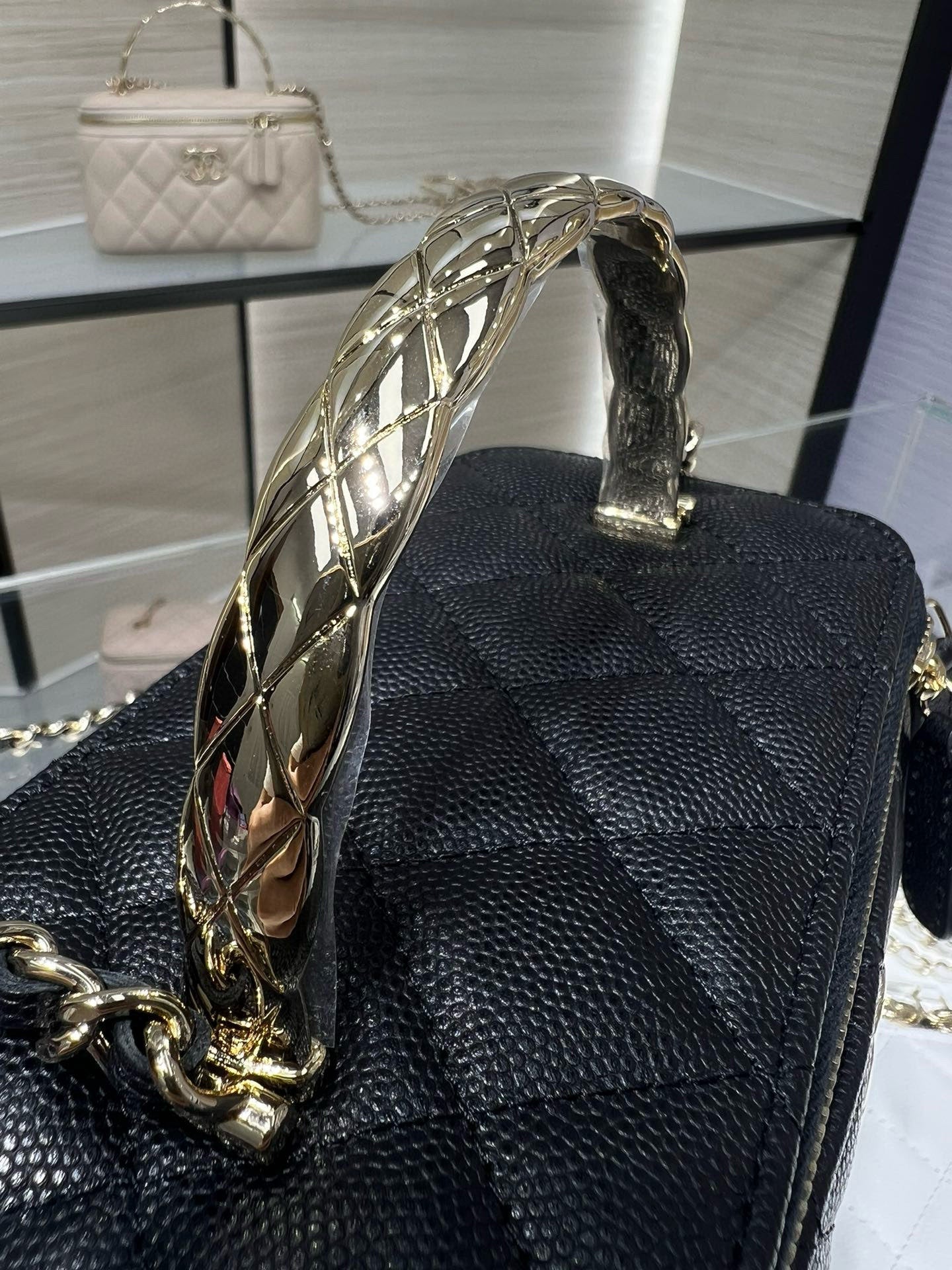 CC 25S Small Vanity 17cm Black Grained Calfskin Light Gold Hardware