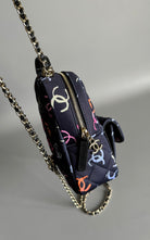 CC BACKPACK 18CM BLACK & MANY OTHER COLORS PRINTED FABRIC GOLD HARDWARE