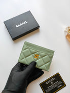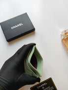 CC CARD HOLDER 11.2 LIGHT GRREN GRAINED CALFSKIN GOLD ICON