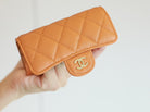 CC FLAP CARD HOLDER 11.3 ORANGE GRAINED CALFSKIN GOLD ICON