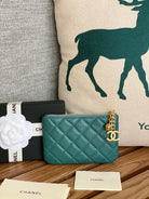 cc zipped wallet 14cm dark green caviar gold hardware