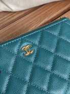 cc zipped wallet 15 blue green caviar gold hardware
