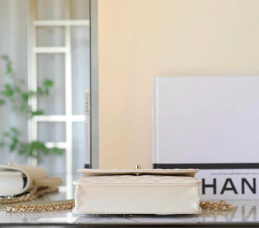 CC 25C Top Handle 18cm Cream Grained Calfskin