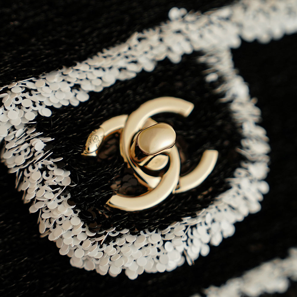 CC 2025 Flap Bag Black White Sequin 308600