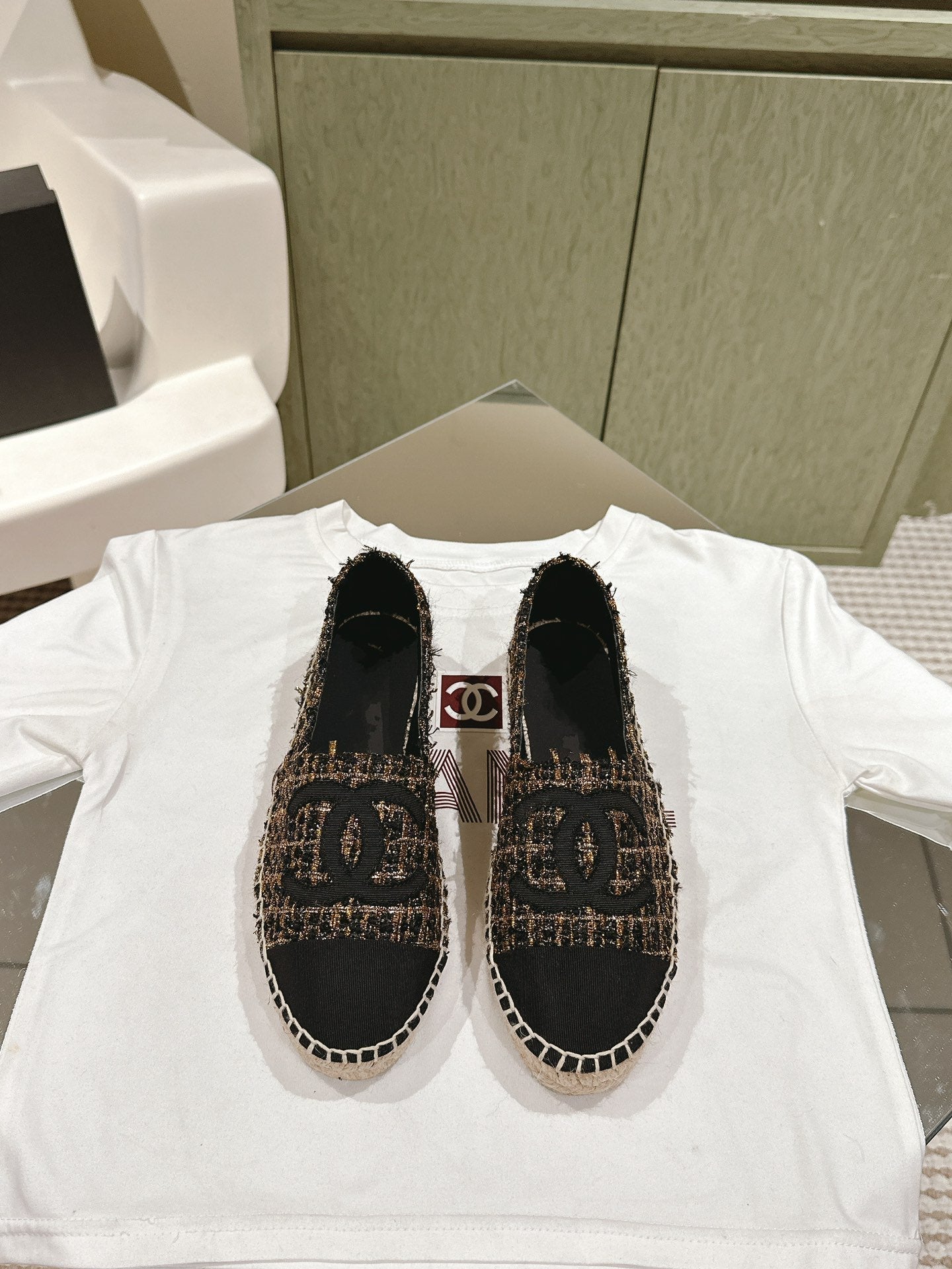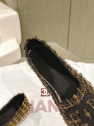 espadrilees black gold tweed canvas