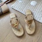 CC 25 Flip Flop Sandals Beige Suede Calfskin Espadrilles