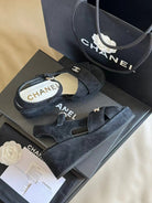CC CLASSIC WEDGE SANDALS IN BLACK LAMBSKIN SUEDE
