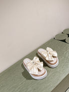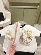 CC SLIPPERS WITH SILK BOW IN WHITE COWHIDE