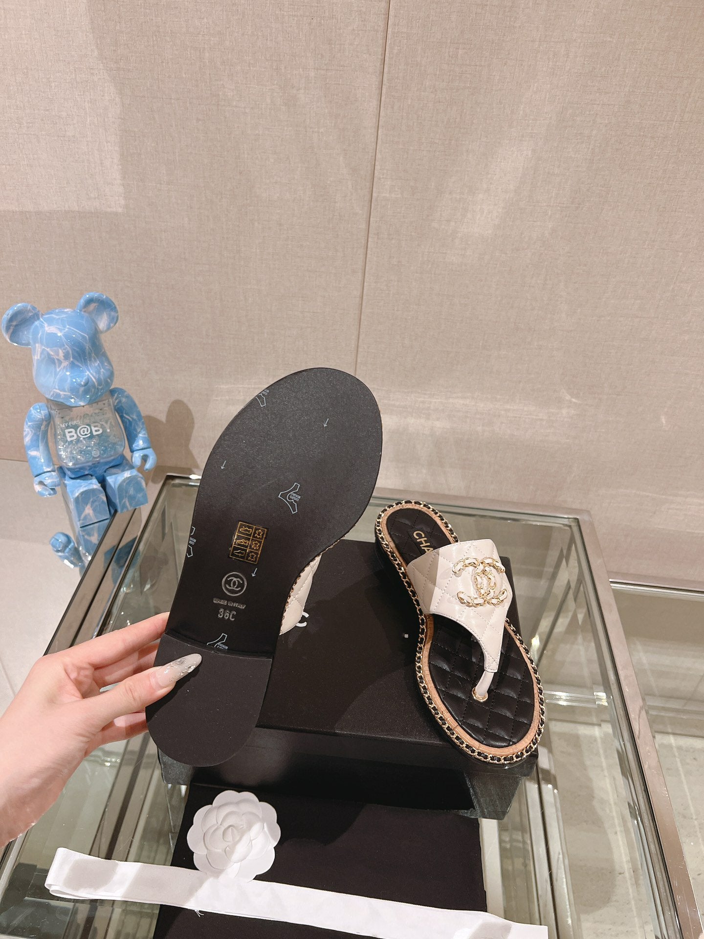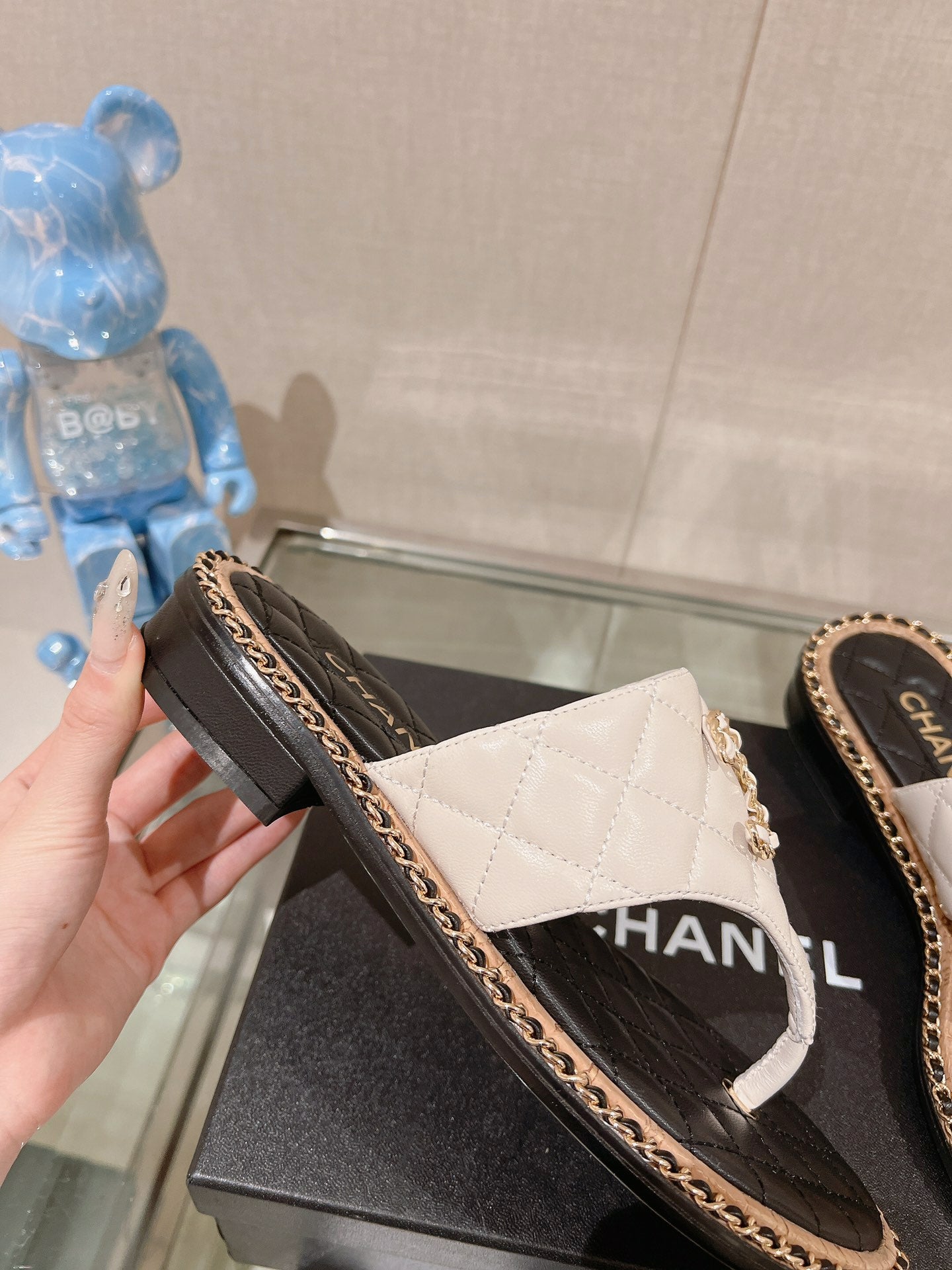 cc thong sandal 30 white black quilted lambskin
