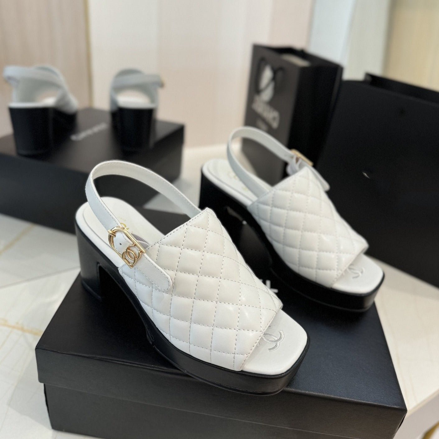 high heel 100 slingback sandal white black quilted calfskin