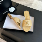 SLIPPERS BEIGE CREAM QUILTED LAMBSKIN
