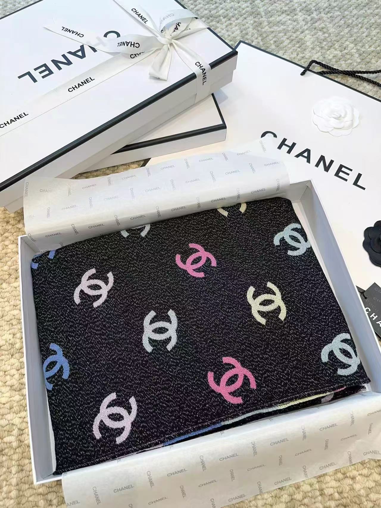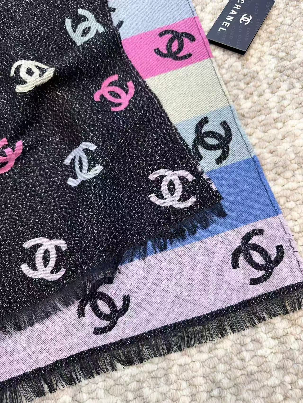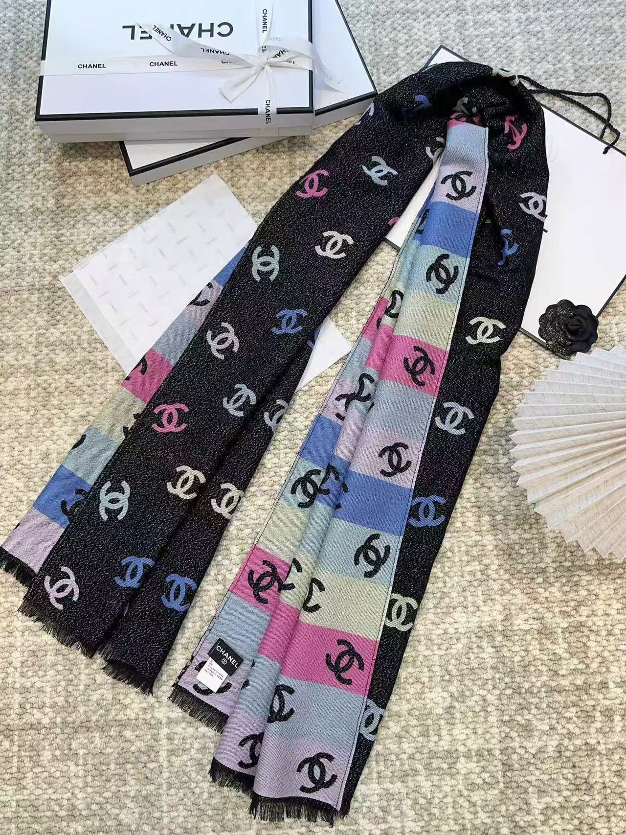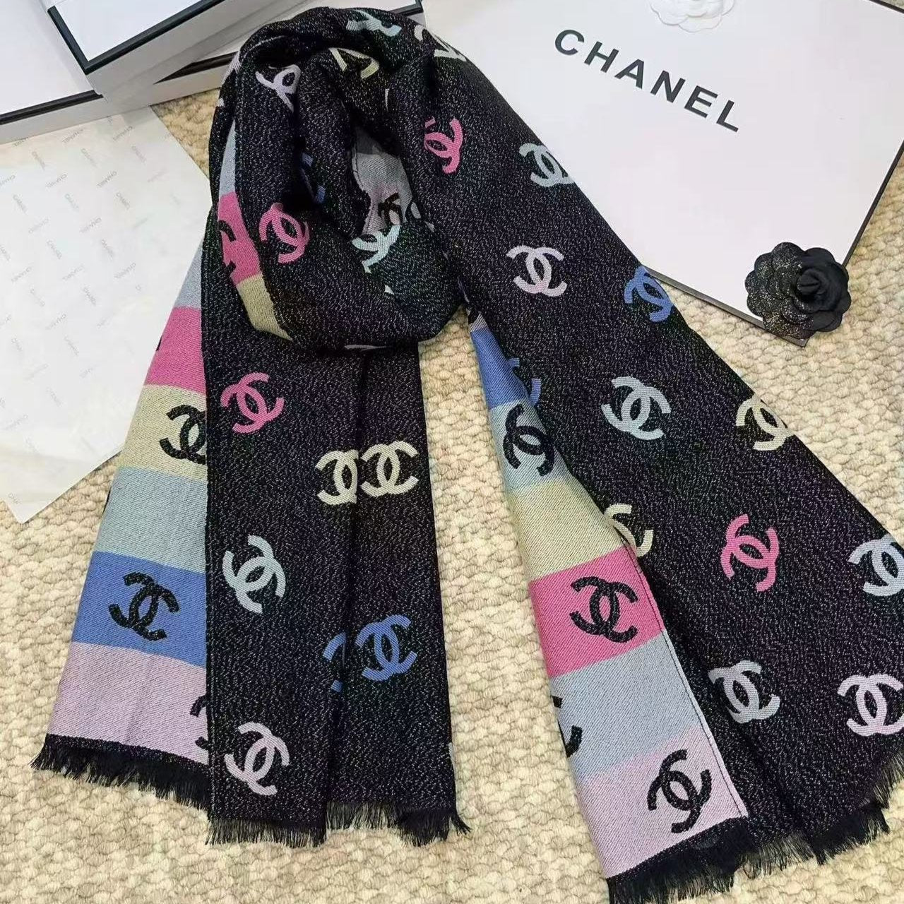 CC Black And Multicolor Scarf 185cm Lamb Wool