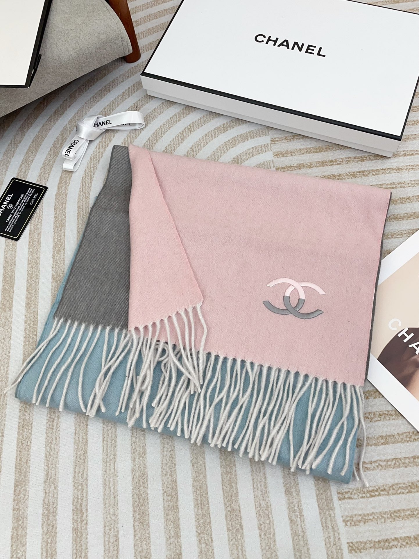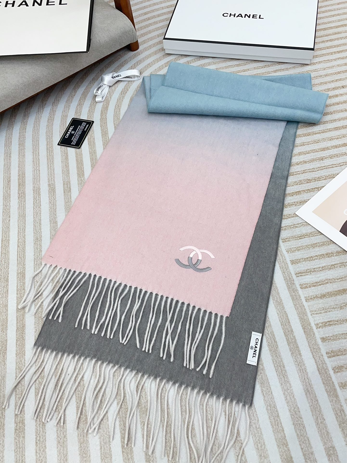 CC Scarf 180 CM In Pink Mix Grey Blue Cashmere 422761