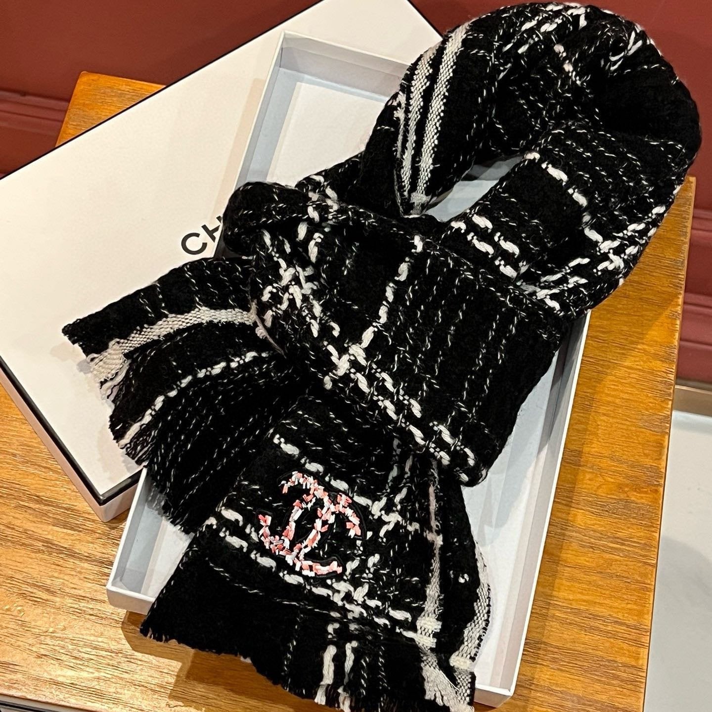 CC Scarf 185 CM Black With White Stripes Cashmere 422921