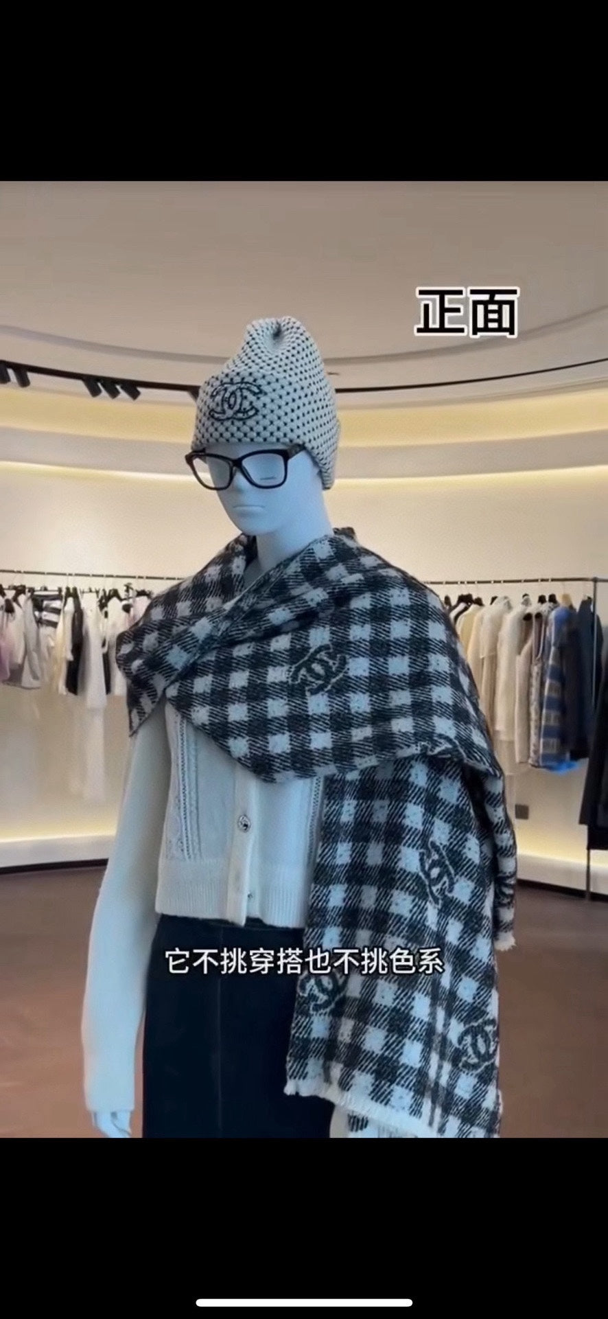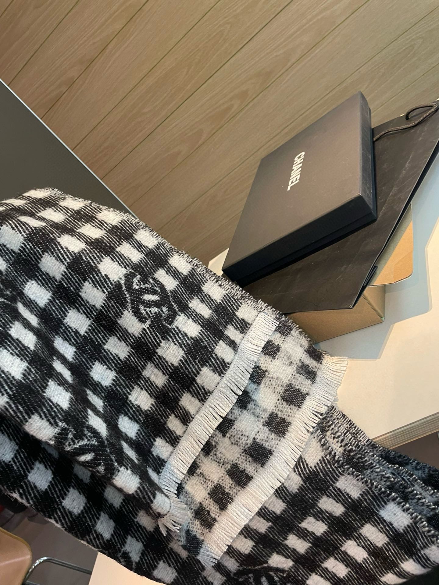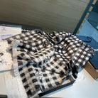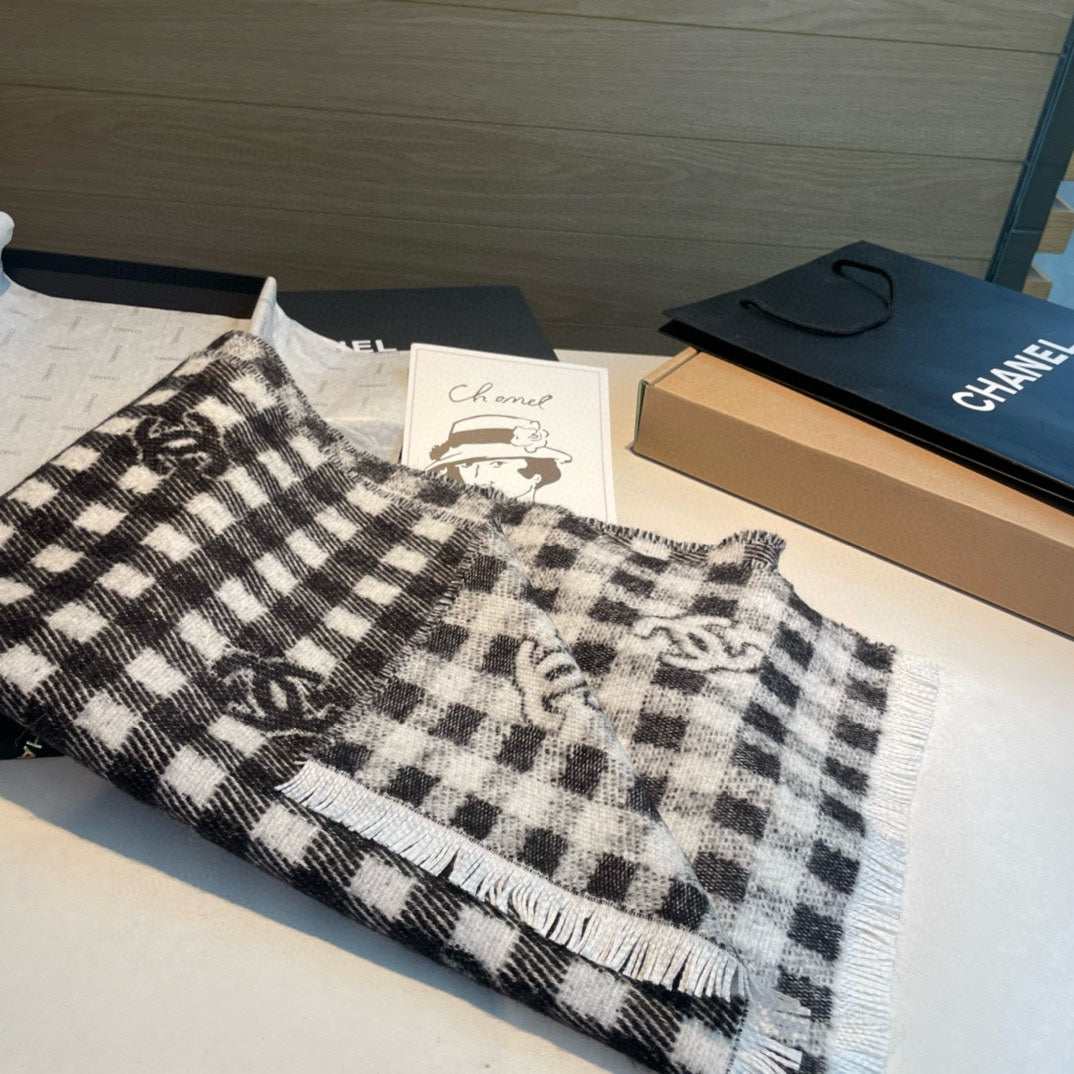 CC Scarf 190 CM In Black And White Plaid Cashmere Mix Wool And Silk 418284