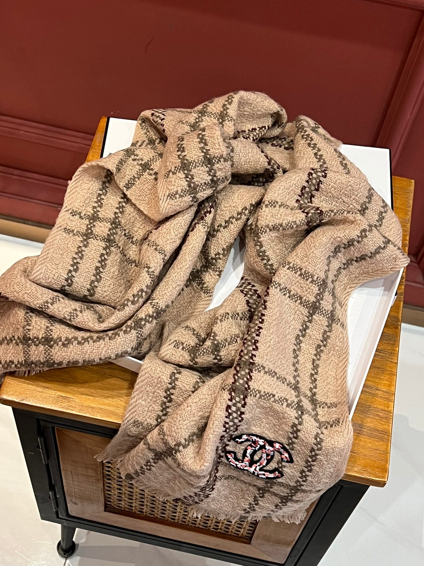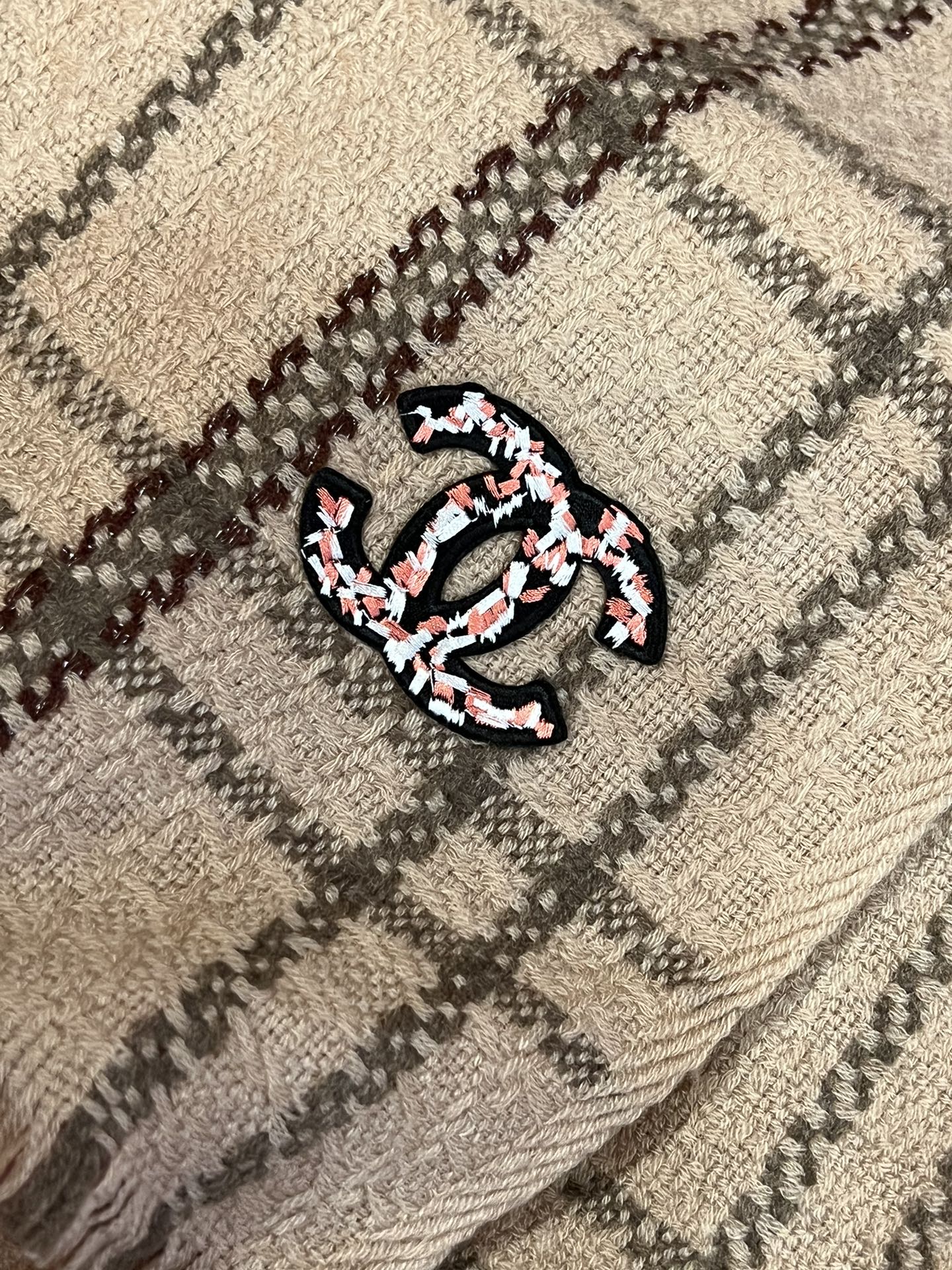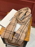 CC Scarf 190 CM In Dark Beige With Brown Stripes Wool 420037