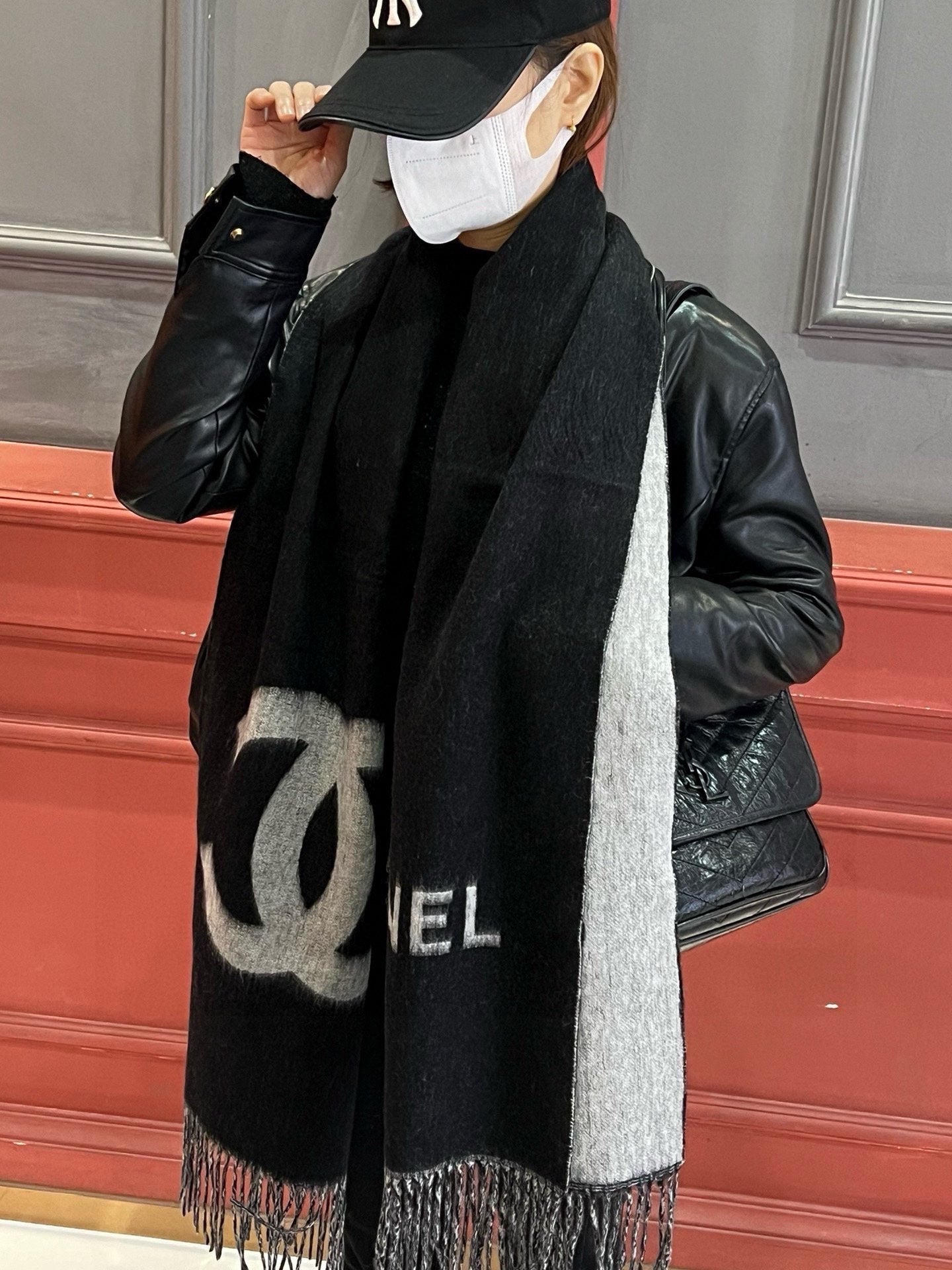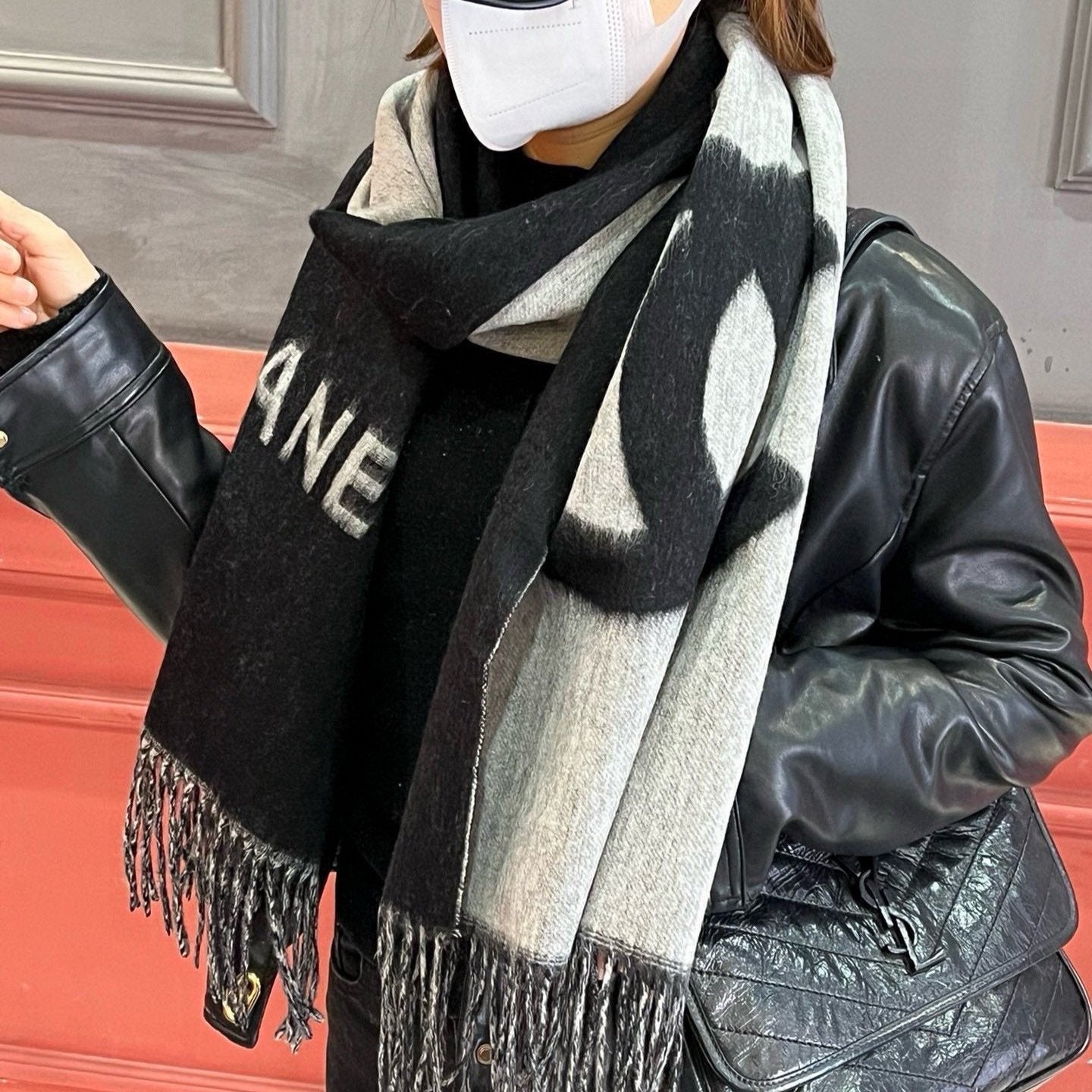 CC Scarf 200 CM In Black Mix Grey Cashmere 304302