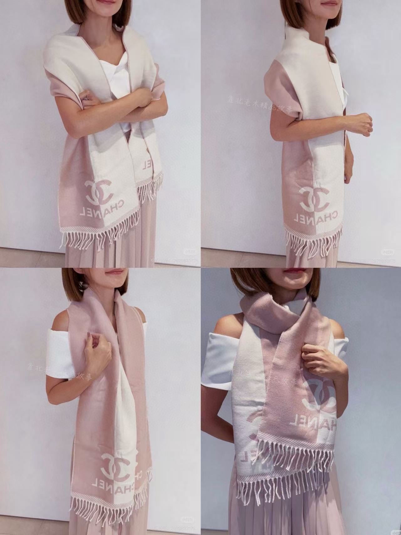 CC Scarf 200 CM In White Mix Pink Wool And Cashmere 418268
