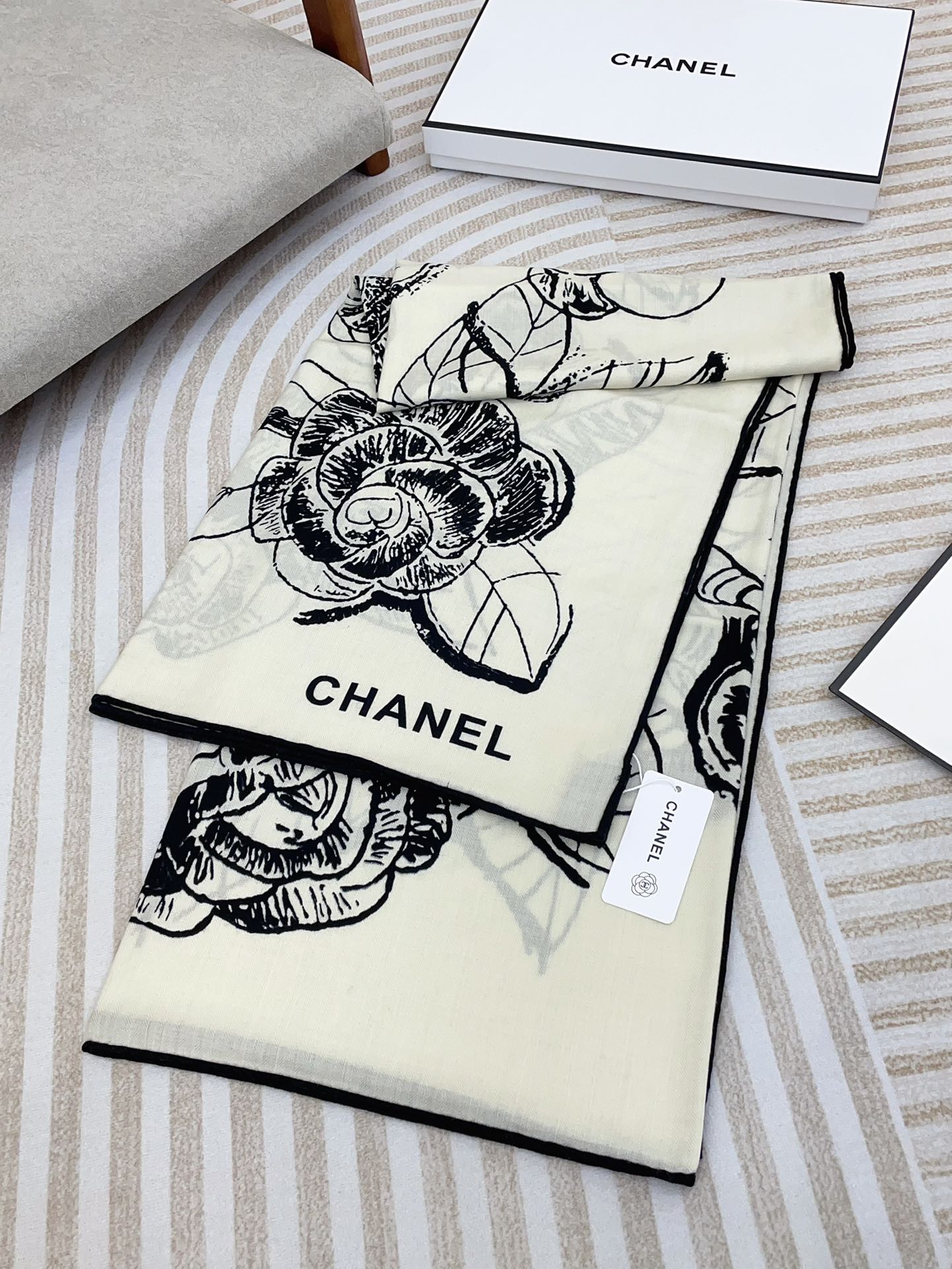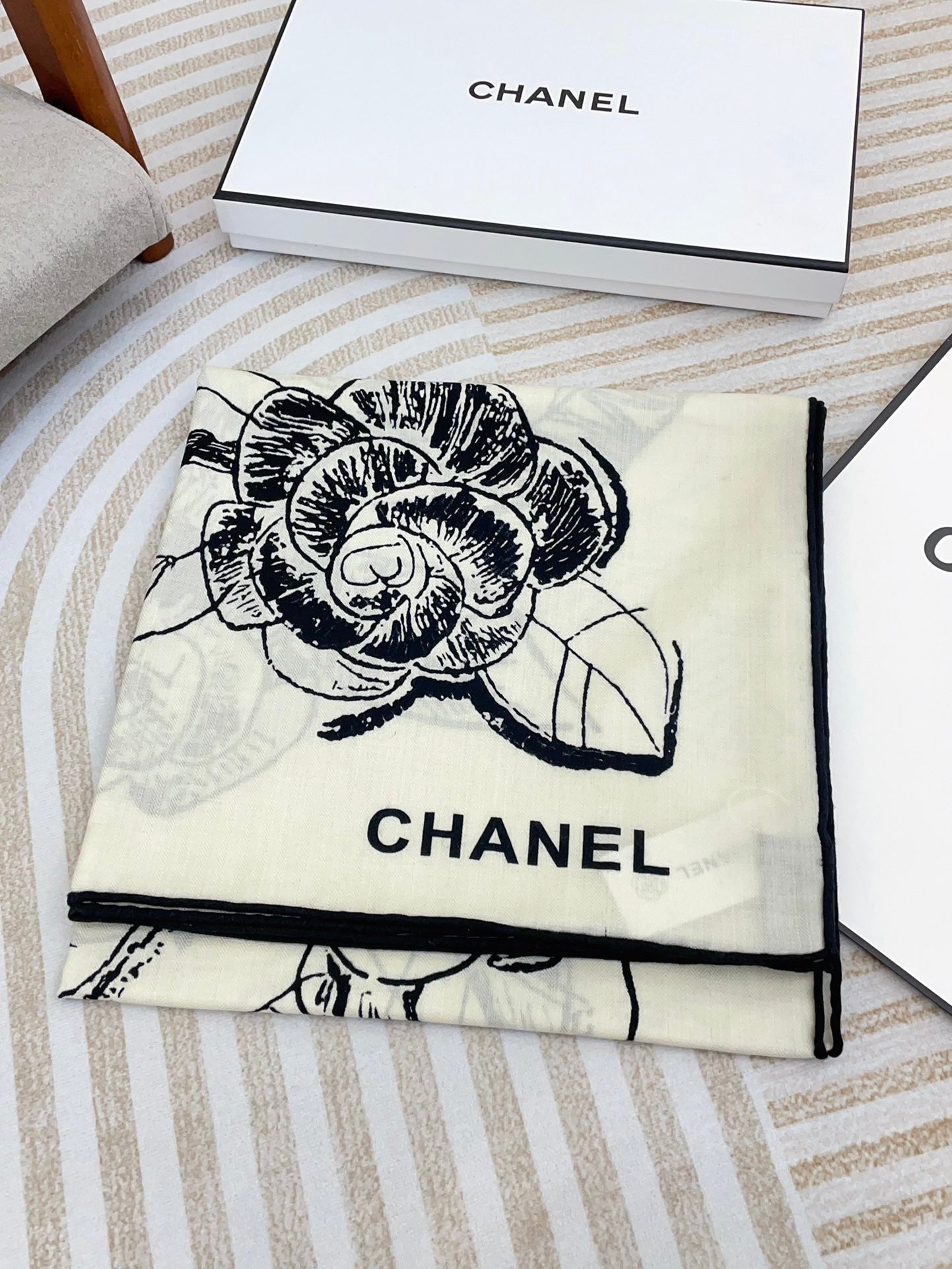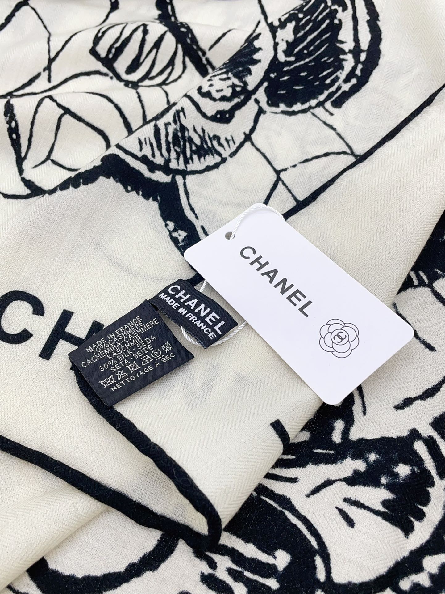 CC Square Scarf 140 CM In White Black Cashmere And Silk 416900
