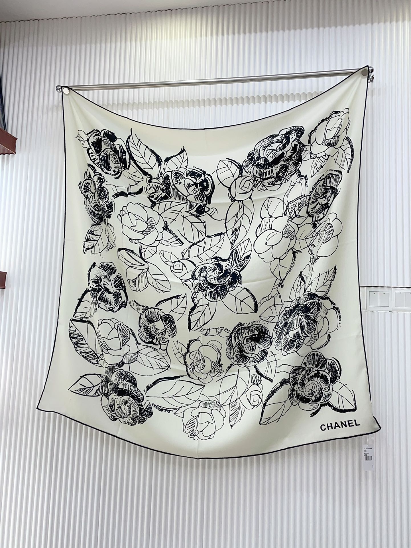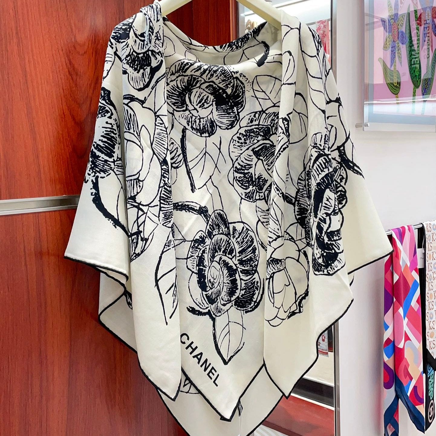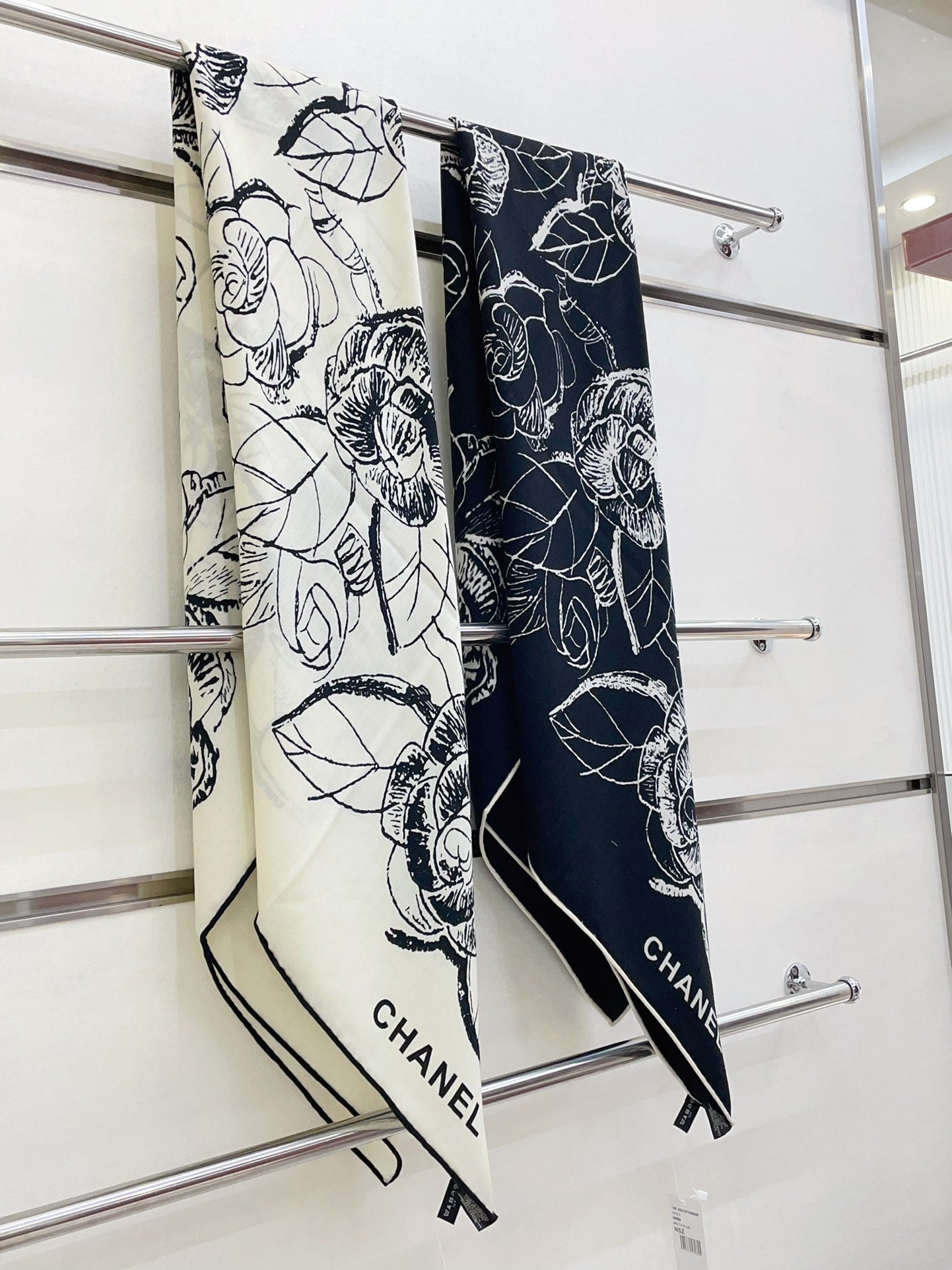 CC Square Scarf 140 CM In White Black Cashmere And Silk 416900