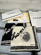 CC Square Scarf 140 CM In White Black Cashmere Silk 408419
