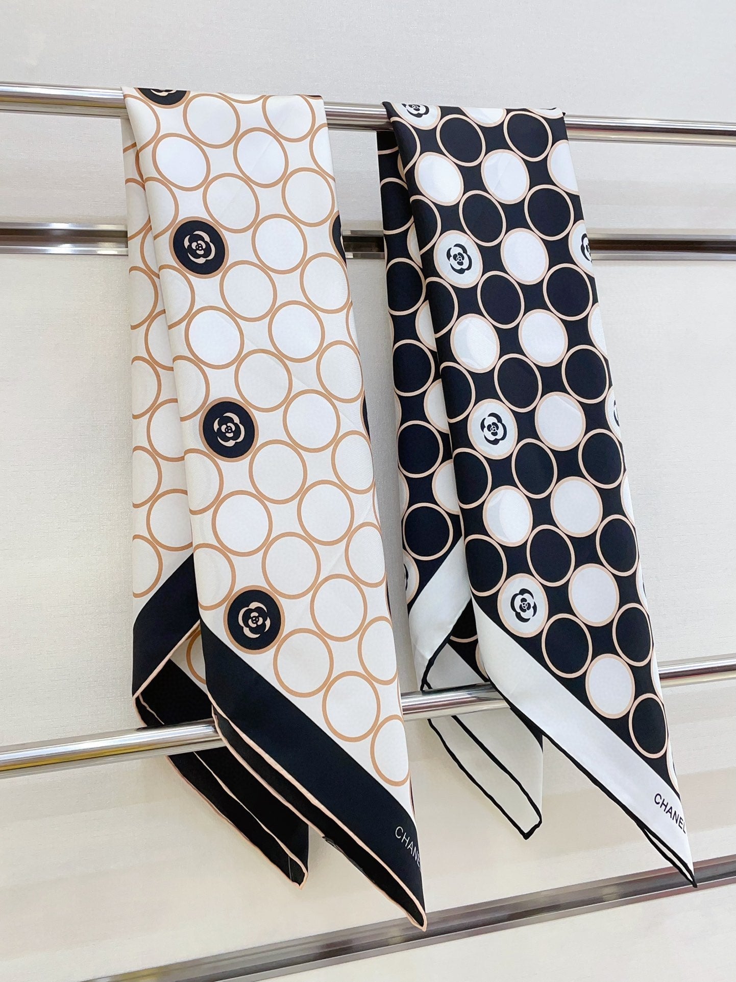 CC Square Scarf 90 CM In White Beige Mix Black Silk Twill 350414