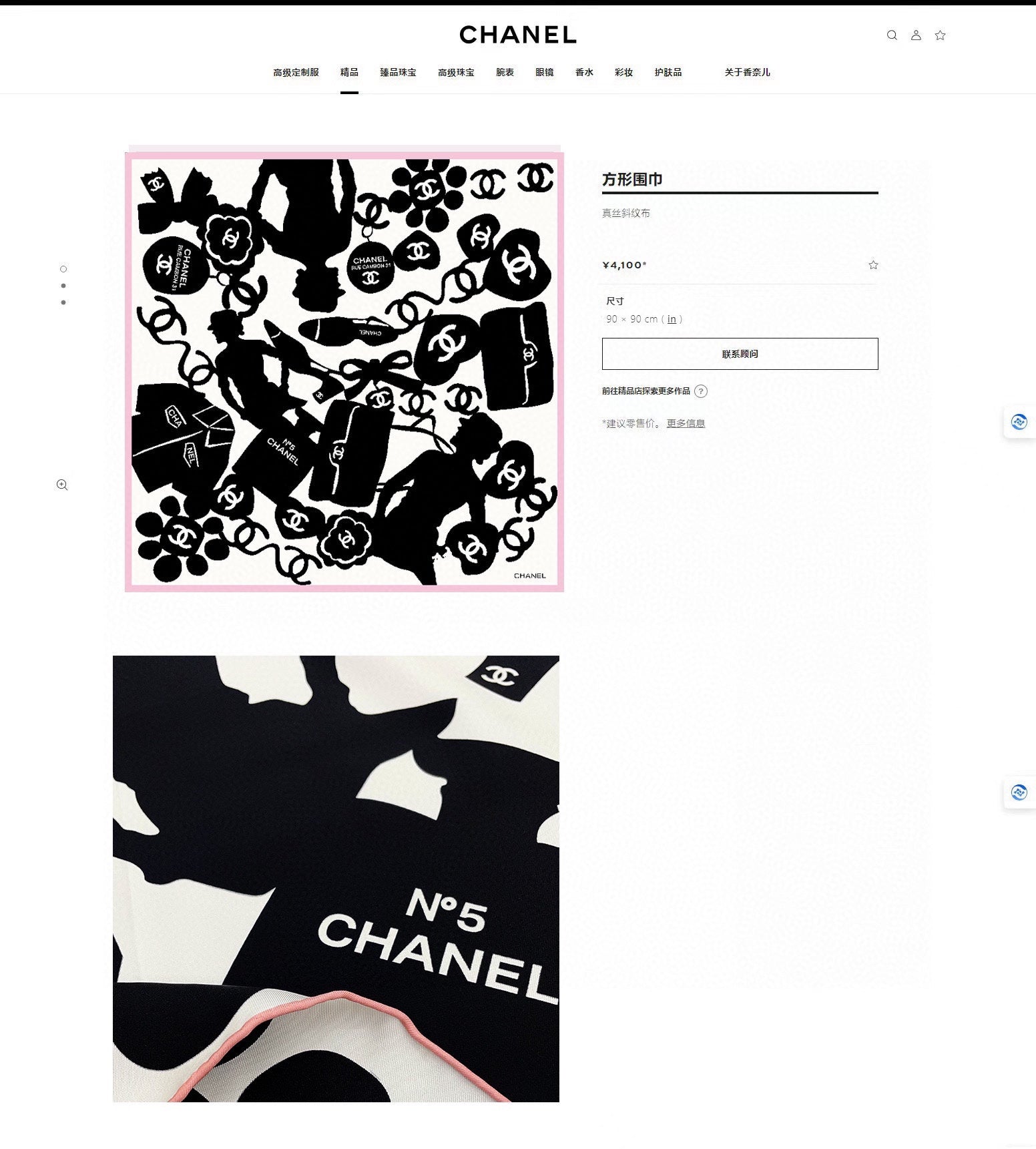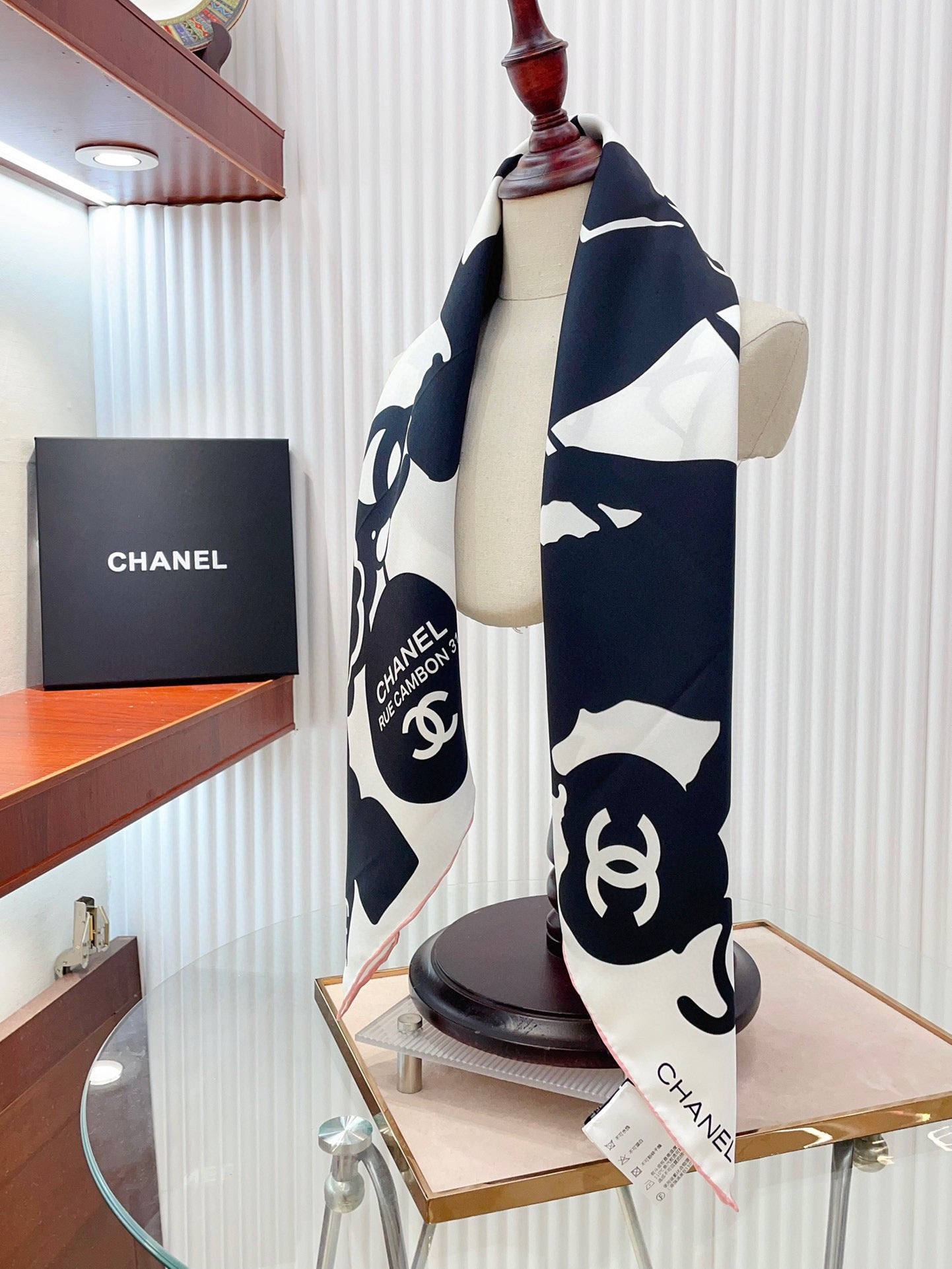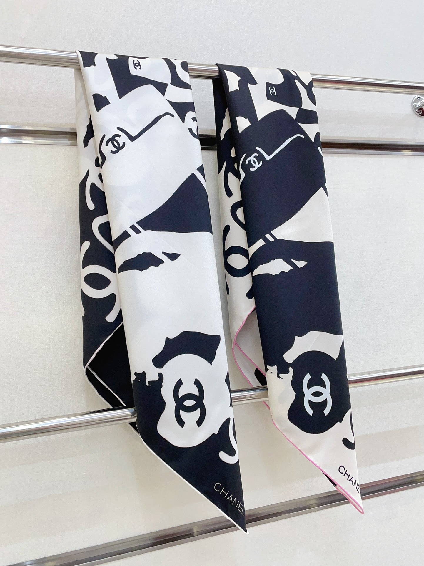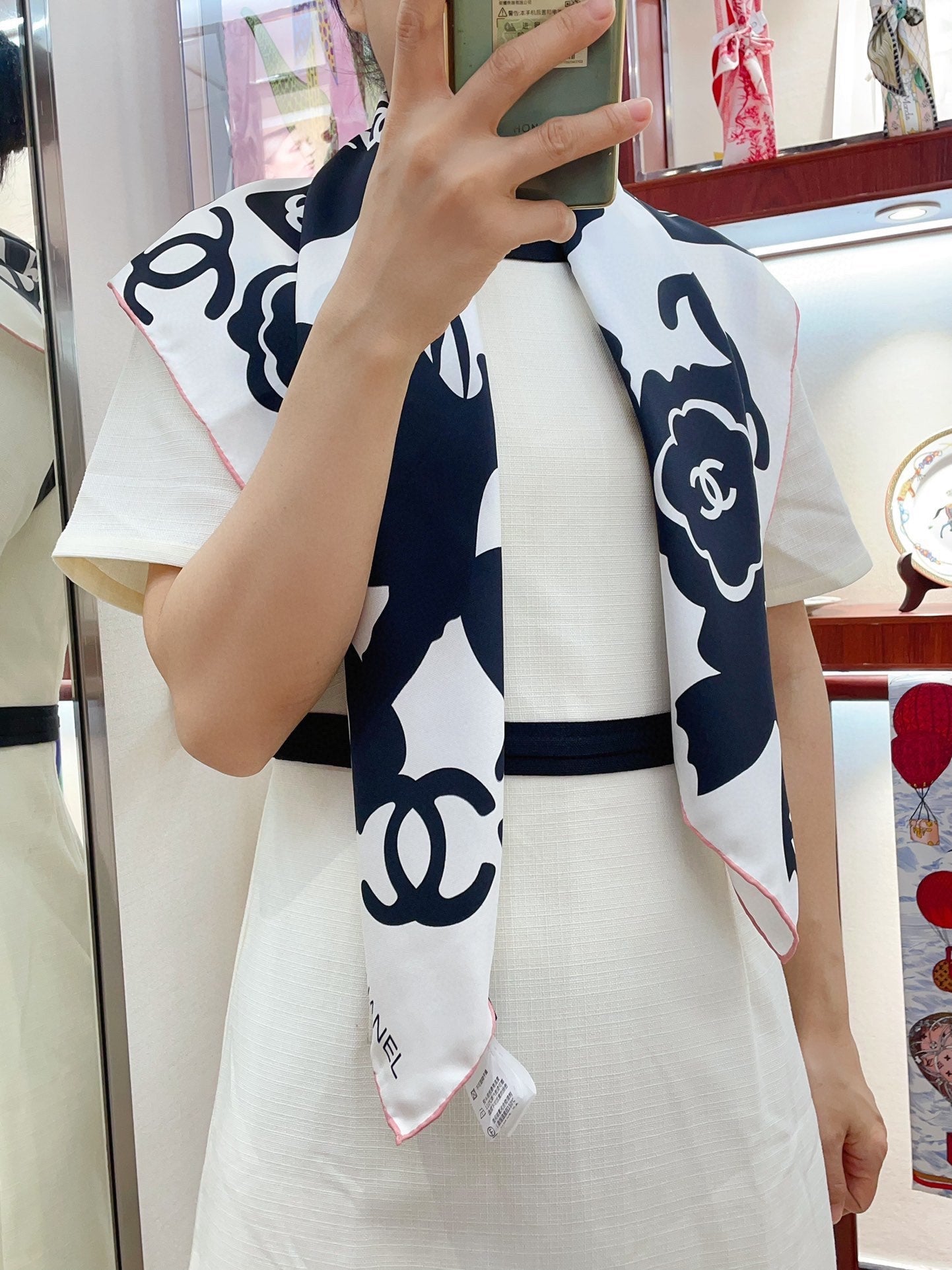 CC Square Scarf 90 CM In White Mix Black Silk 305180