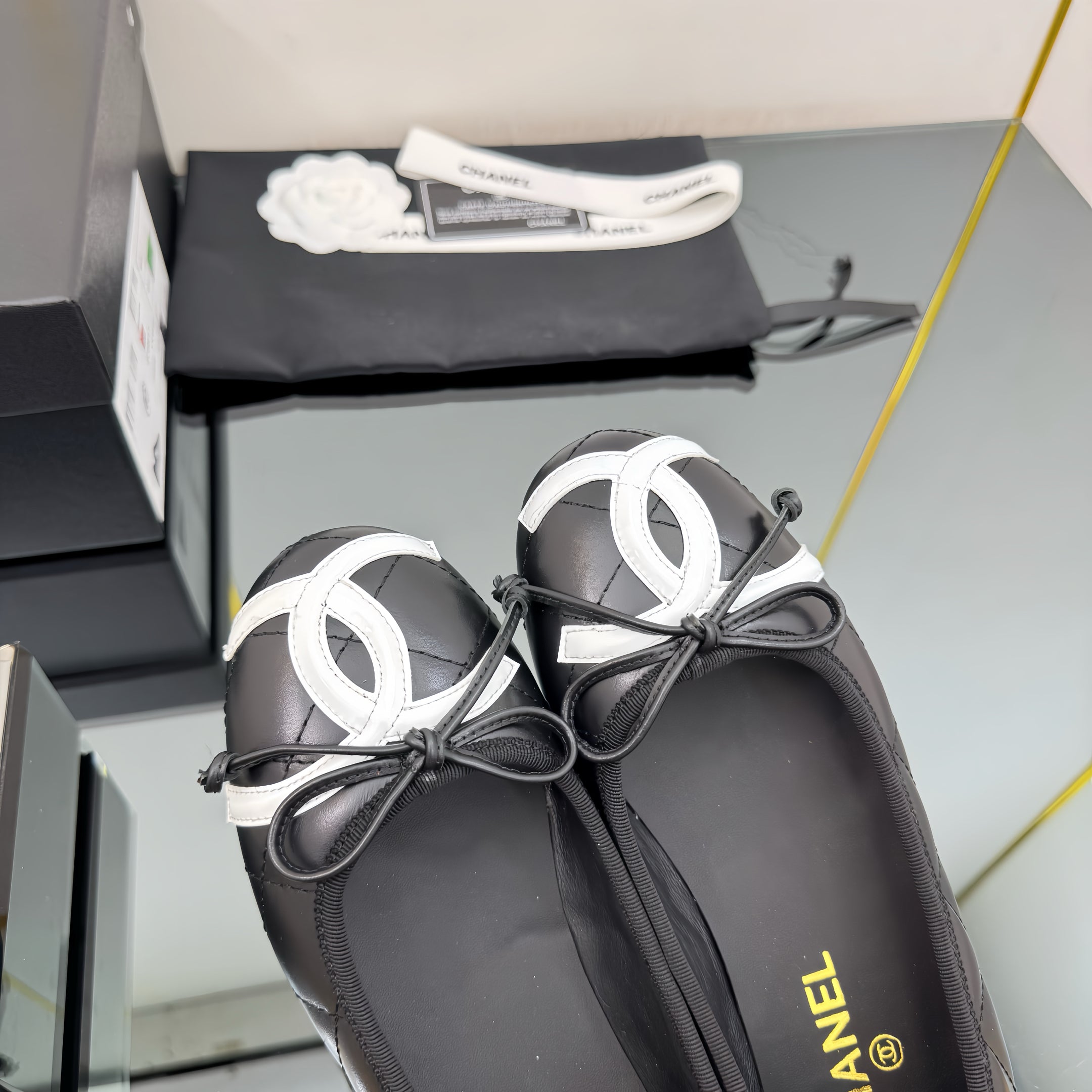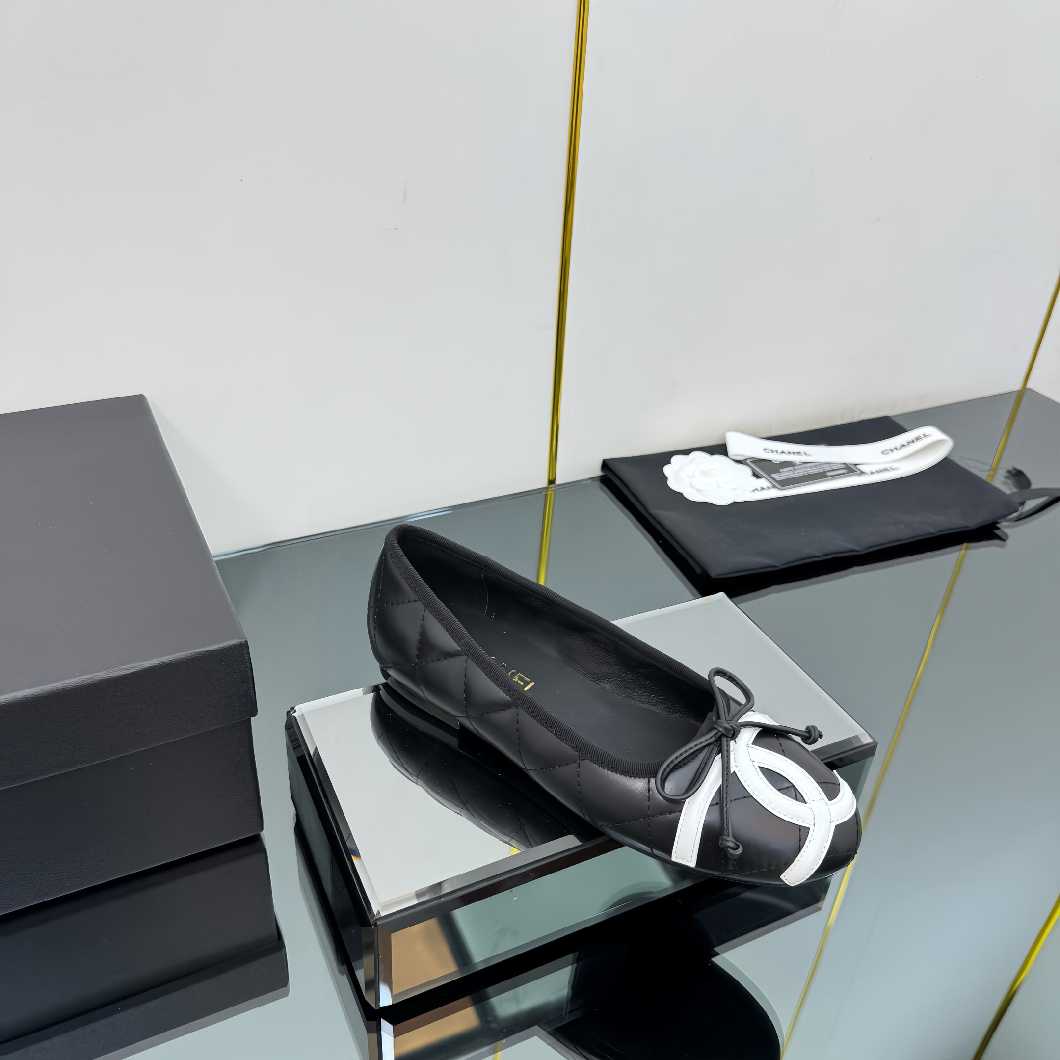 CC 25 Cambon Ballet Flat Black White Quilted Calfskin