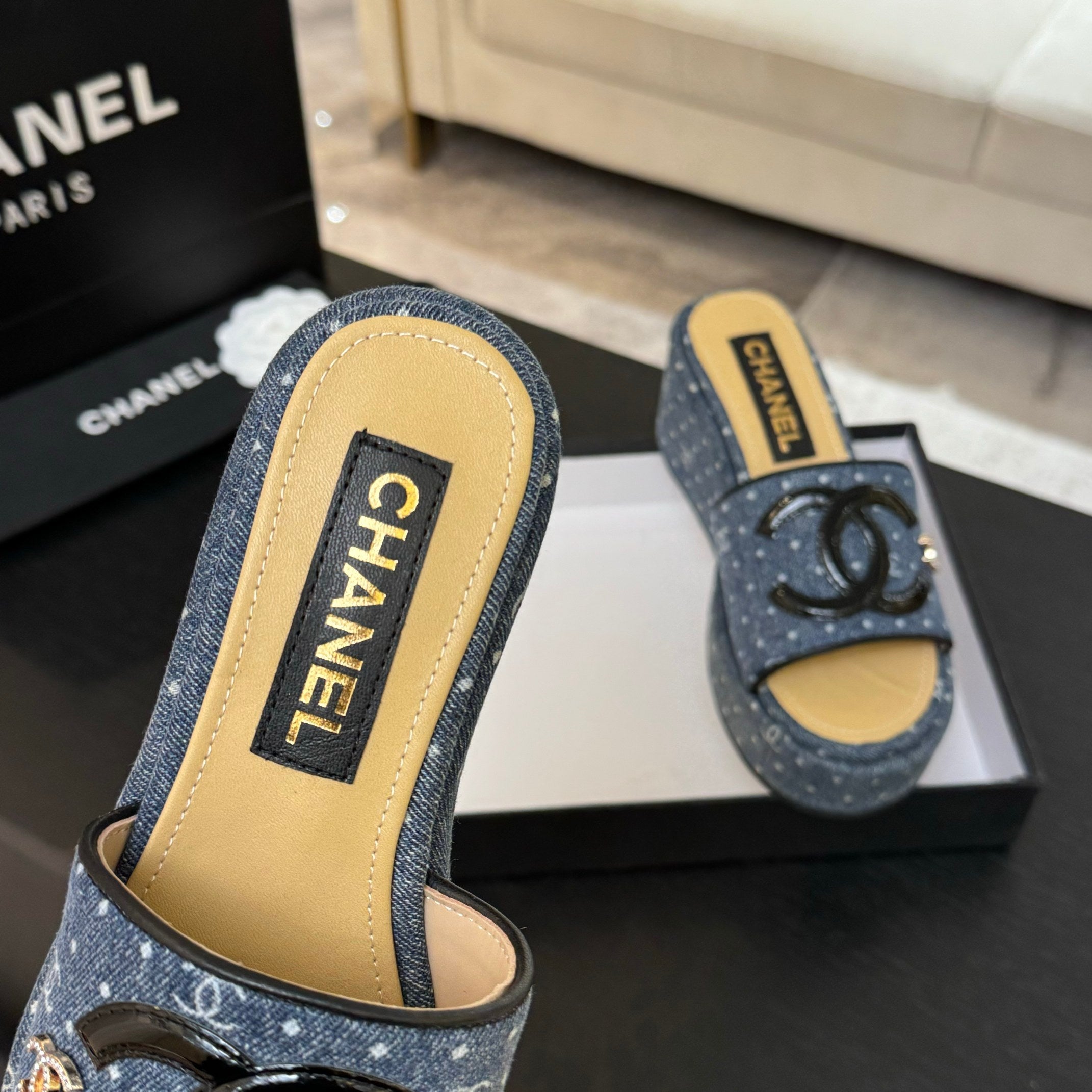 CC 25C Platform Slide Sandals Navy Blue Fabric 213158