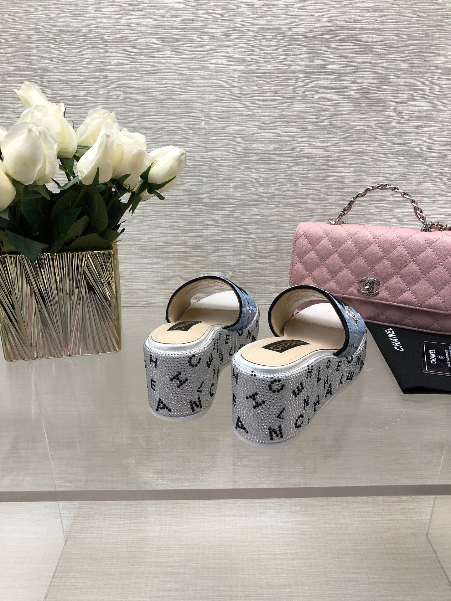 CC 25C Platform Slide Sandals Steed Blue Fabric 213131