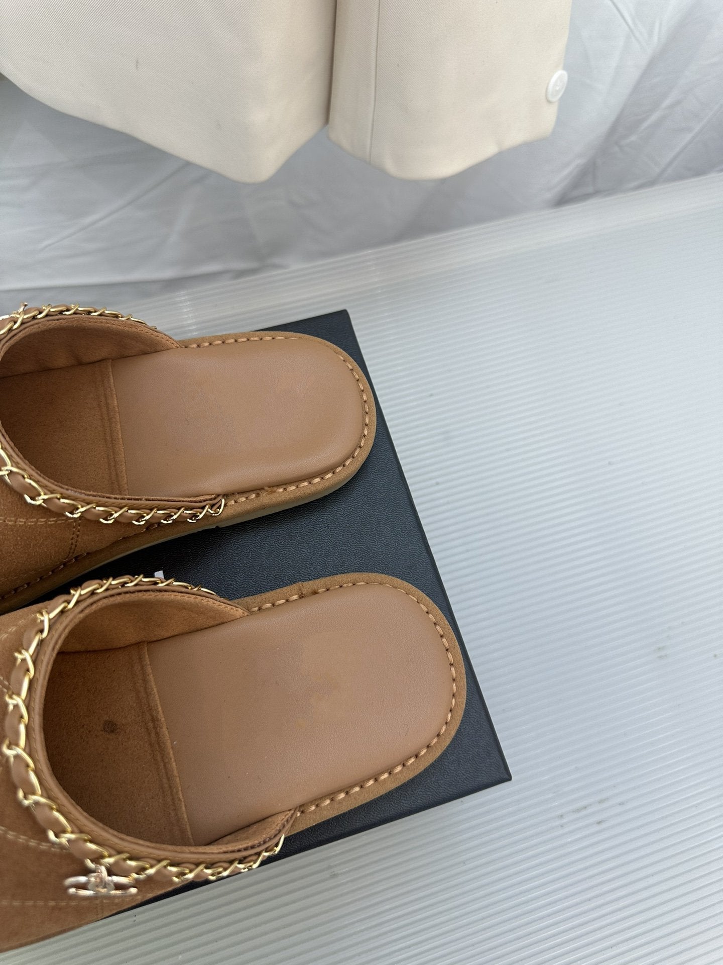 CC Brown Suede Gold Chain Mules