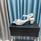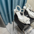 CC CAMELLIA SANDAL IN WHITE SUEDE AND BLACK CALFSKIN WITH FLOWER