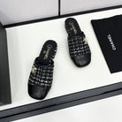 CC FLAT MULE IN BLACK MIX WHITE WOOL TWEED AND CALFSKIN