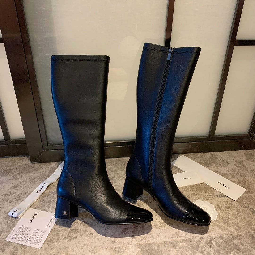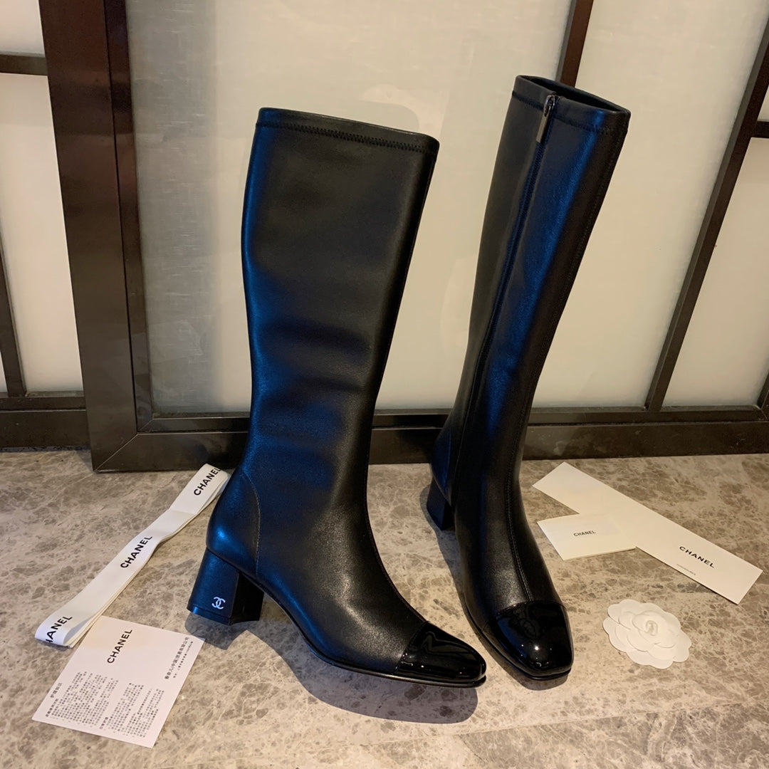 CC High Boots 50mm In Black Lambskin And Glossy Cowhide 940065