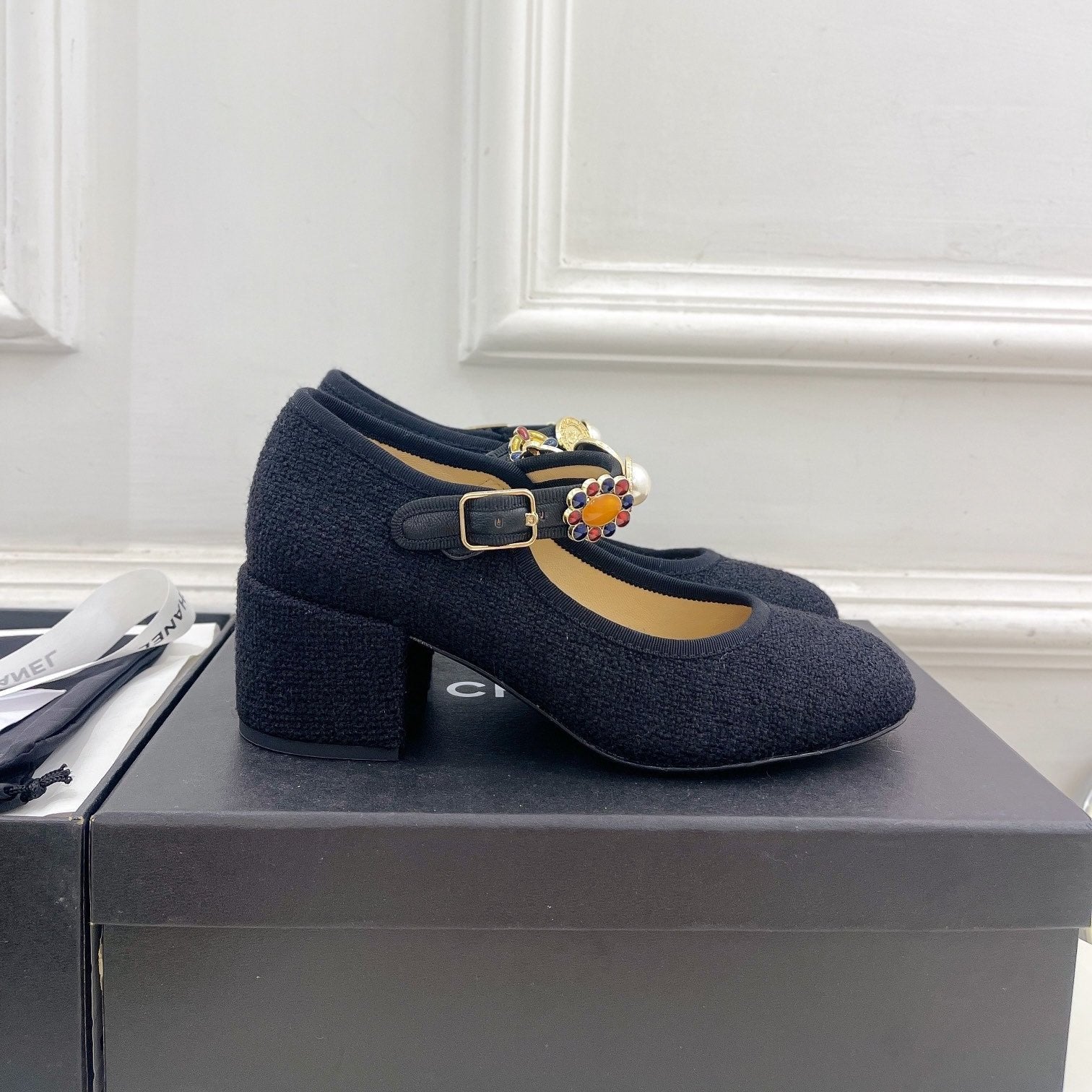 CC High Mary Janes 55mm Black Wool Tweed And Fabric 948815