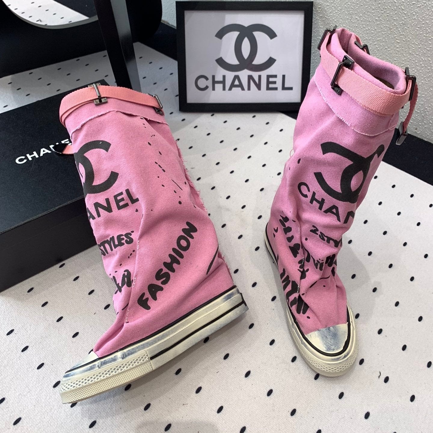 CC High-Top Canvas Boots Pink Black Denim Fabric 938048