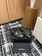 CC Mule 30mm In Black Mix White Wool Tweed And Lambskin