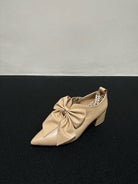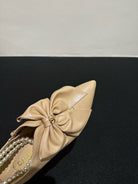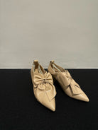CC Pointed Toe High Heels Beige Bow Tie Cowhide