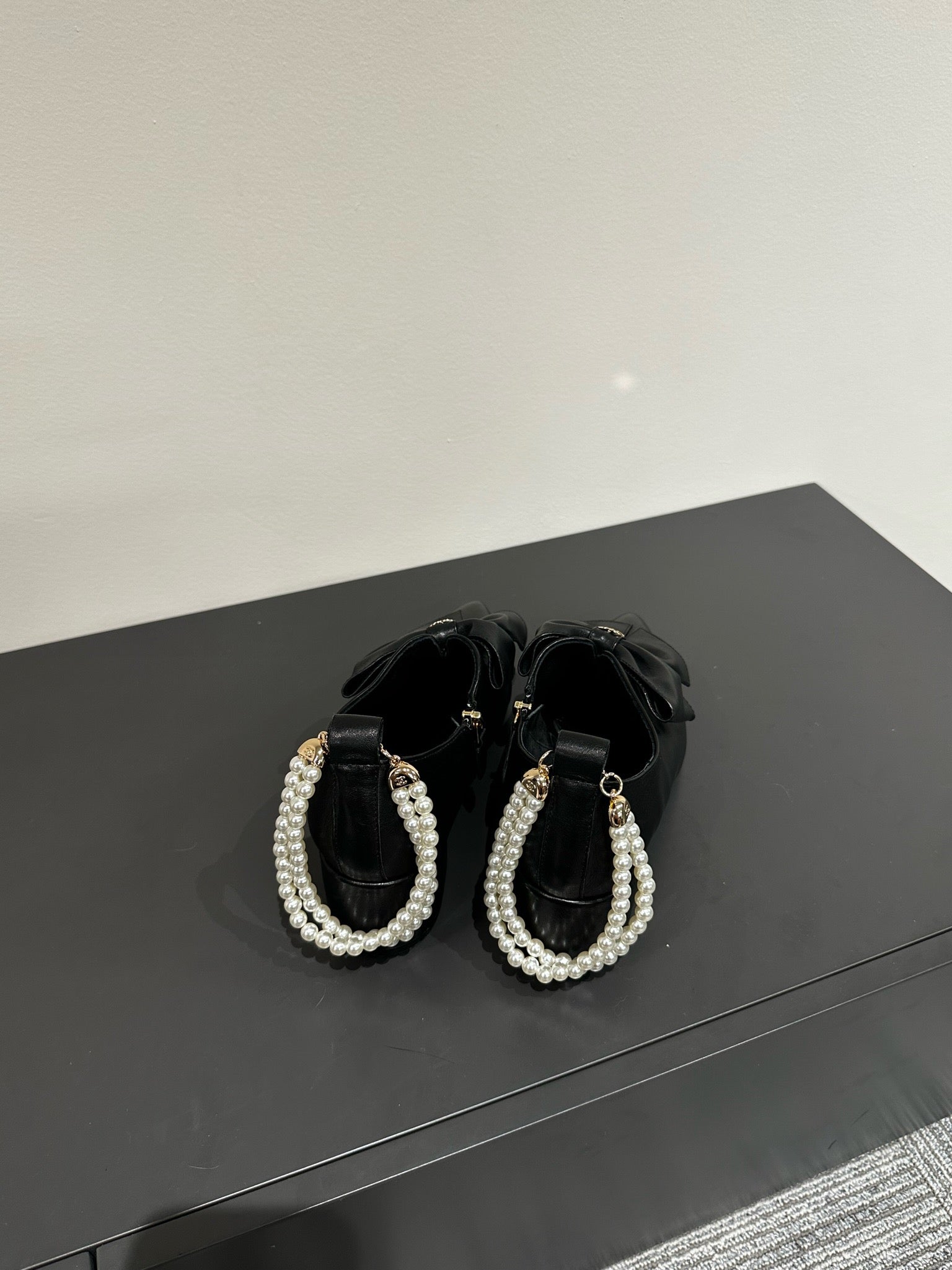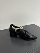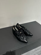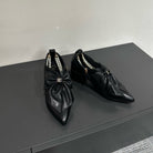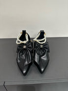 CC Pointed Toe High Heels Black Bow Tie Cowhide