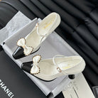 CC POINTED TOE HIGH HEELS IN WHITE MIX BLACK LAMBSKIN GOLD HARDWARE