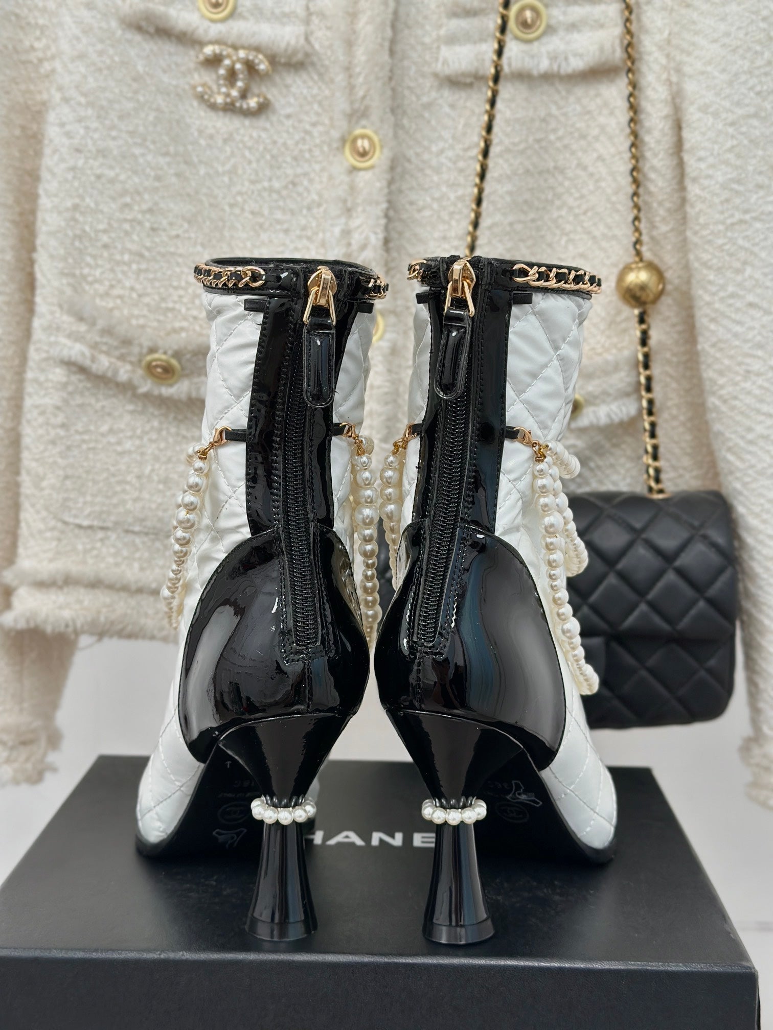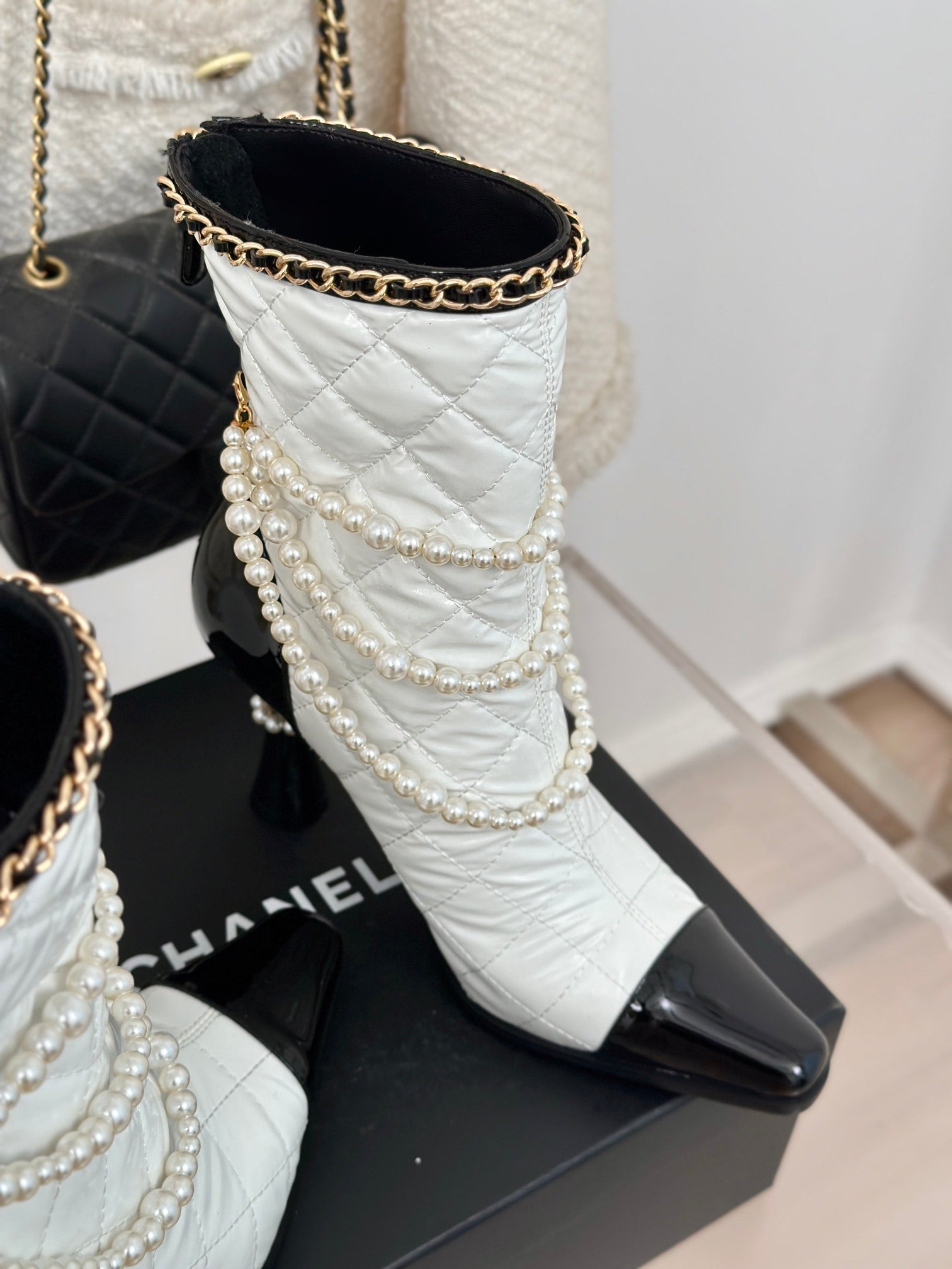 CC Short Boots 80mm White Wrinkled Quilted Calfskin